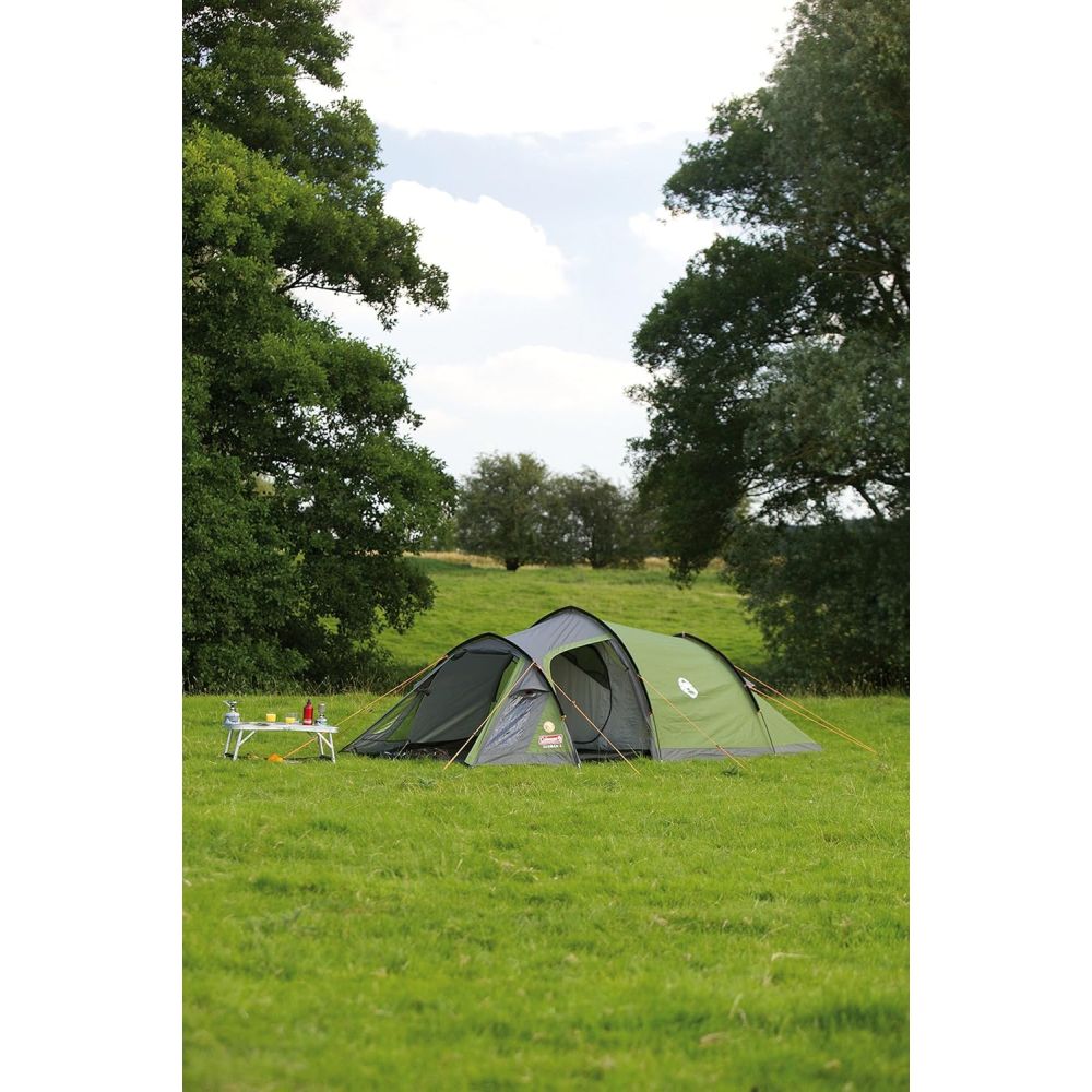 Coleman Tasman 3 er et praktisk og komfortabelt tunnel­telt til op til tre personer – perfekt til campingture, festivaler og weekendophold i naturen. Teltet kombinerer god plads, solid vejrbeskyttelse og en let opsætning, hvilket gør det til et oplagt valg for både begyndere og erfarne campister. Teltets tunnelkonstruktion giver en stabil struktur og god udnyttelse af pladsen. Den separate sovekabine giver et komfortabelt soveområde, mens det rummelige fortelt kan bruges til opbevaring af udstyr, sko eller som opholdsrum i dårligt vejr. De store vinduer i forteltet sørger for et godt lysindfald, så teltet føles lyst og indbydende - selv på overskyede dage.