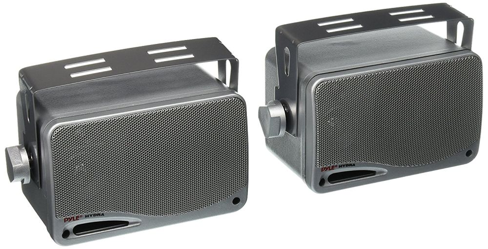 PYLE AUDIO HYDRA MARINE vandtætte kabinethøjtaler på monteringsbøjle. Med hele 3 højtaler indbygget i kabinet, 1x 3,5" woofer, 1x 1,75" mellemtone og 1x 1" diskant opnår man en perfekt lyd, super nem montering. Højttalerne leveres komplet med monteringsskruer, beslag og ledning. Velegnet til bil, båd og camping m.m. Leveres i sæt med 2 stk. Kan fås i 3 forskellige farver: Sort, hvid eller sølv, vælg hvilken farve du ønsker under vælg farve.
