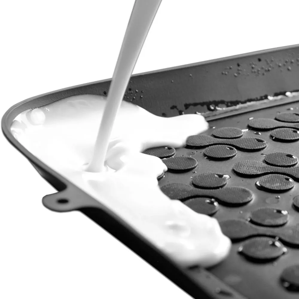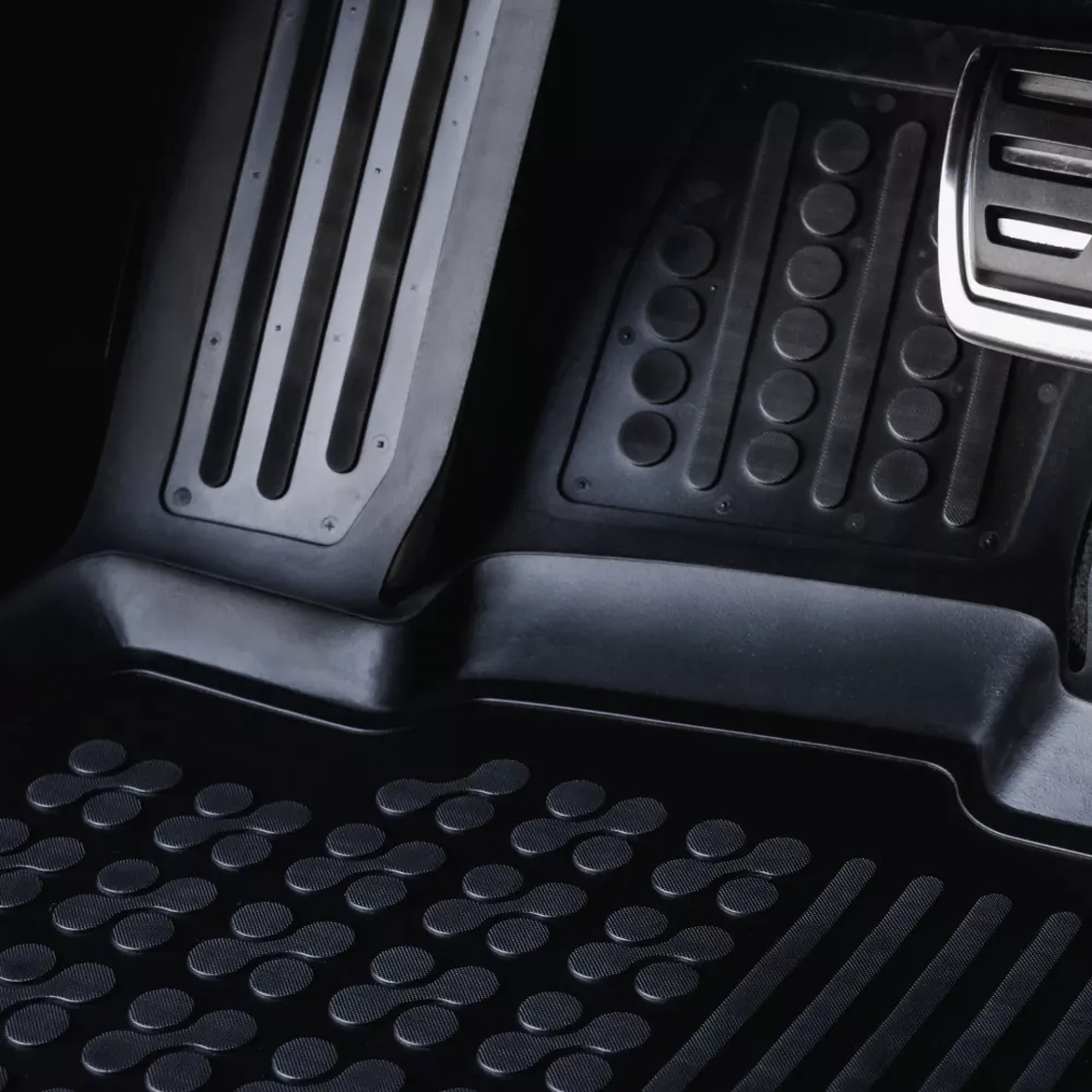 Skræddersyet måtter med 100% pasform. Fremstillet i smidig og kraftigt gummi. 3-5 cm. høj kant der sikre at snavs og sjap ikke løber udenfor måtten.
