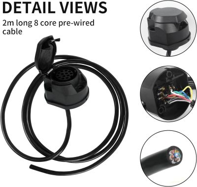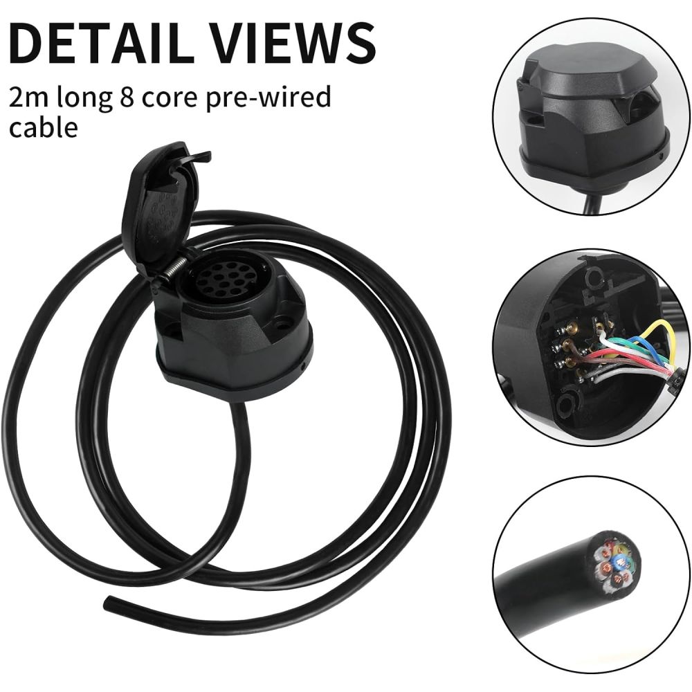 Kabelsæt for anhængertræk 13-polet. Leveres med strømtyve, bolte og møtrikker. Kabel længde: 2 meter.