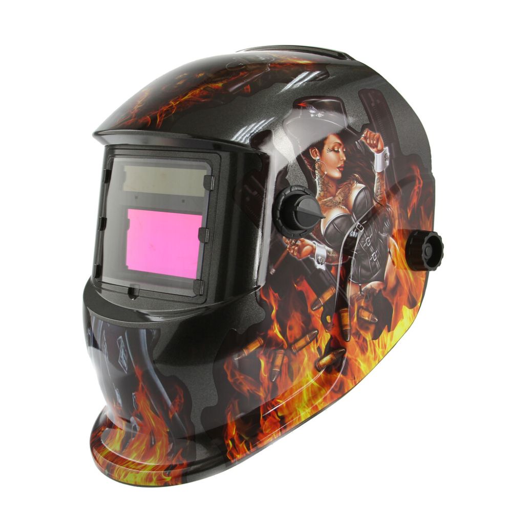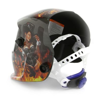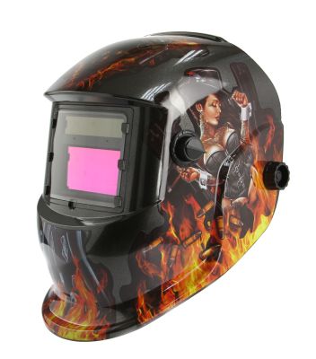Svejsehjelm automatisk med solceller - Med kvinde motiv - Justerbar i størrelse DIN 9-13