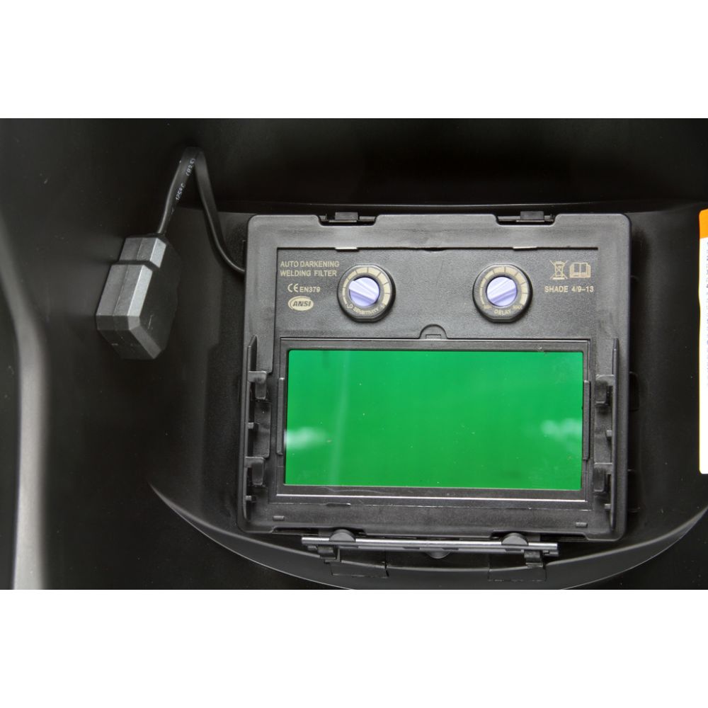 Takket være følsomhedskontrollen kan svejsemasken justeres til det omgivende lys. Det betyder, at mørklægningsfunktionen ikke påvirkes af yderligere lyskilder såsom sollys. Hjelmen har også en forsinkelsesindstilling. Dette får visiret til at lysne med en forsinkelse, efter at svejsningen er afsluttet. Dette forhindrer øjnene i at blive beskadiget af enhver efterglød. Til efterbehandling af svejsningen kan mørklægningsfunktionen slås fra, så du har frit udsyn til slibning mv. Hjelmen tjener som ansigtsbeskyttelse mod flyvende spåner og gnister. Strømforsyningen til den automatiske svejsehjelm er garanteret af solceller af høj kvalitet. Inderhjelmen er justerbar i størrelsen, så den kan tilpasses alle hovedformer. Takket være den polstrede spænde og den lave vægt er komforten meget høj, selv når den bæres i længere perioder. Hjelmen er lavet af ekstremt stabil og slidstærk plast, der kan modstå høj termisk og mekanisk belastning.