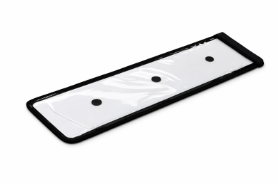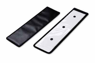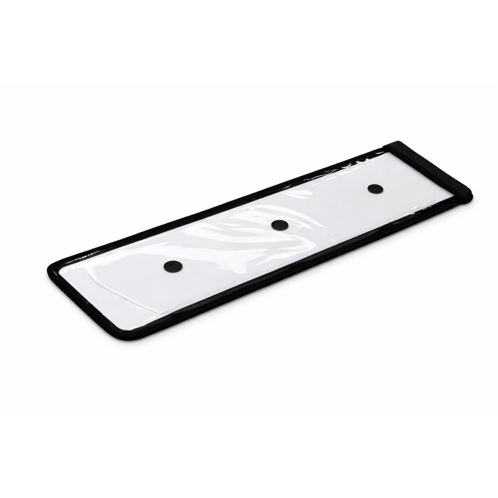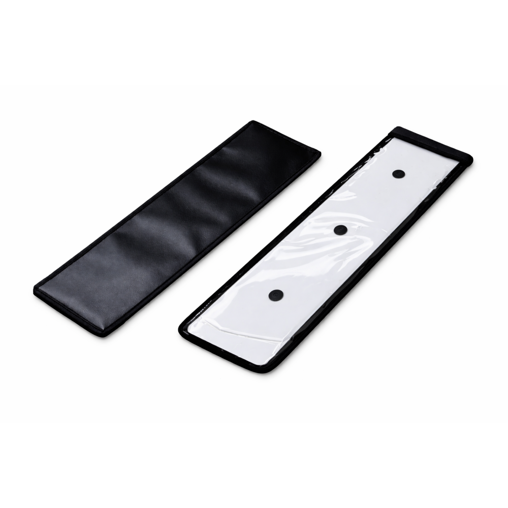 Prøvepladeetui som er forsynet med magneter, indstøbt i gummi, leveres i en sort farve. Lynhurtig montering af prøve-nummerplade, nummerpladeholderen er produceret i en super kvalitet. Velcro-lukning billede er til illustration.