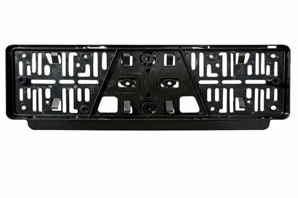Nummerpladeramme sort plast, hvor nummerpladen kan monteres uden at skulle bore huller i den først. Nummerplade holderen tåler bilvaskeanlæg, vrider sig ikke. Passer til Euronorm-nummerplade.