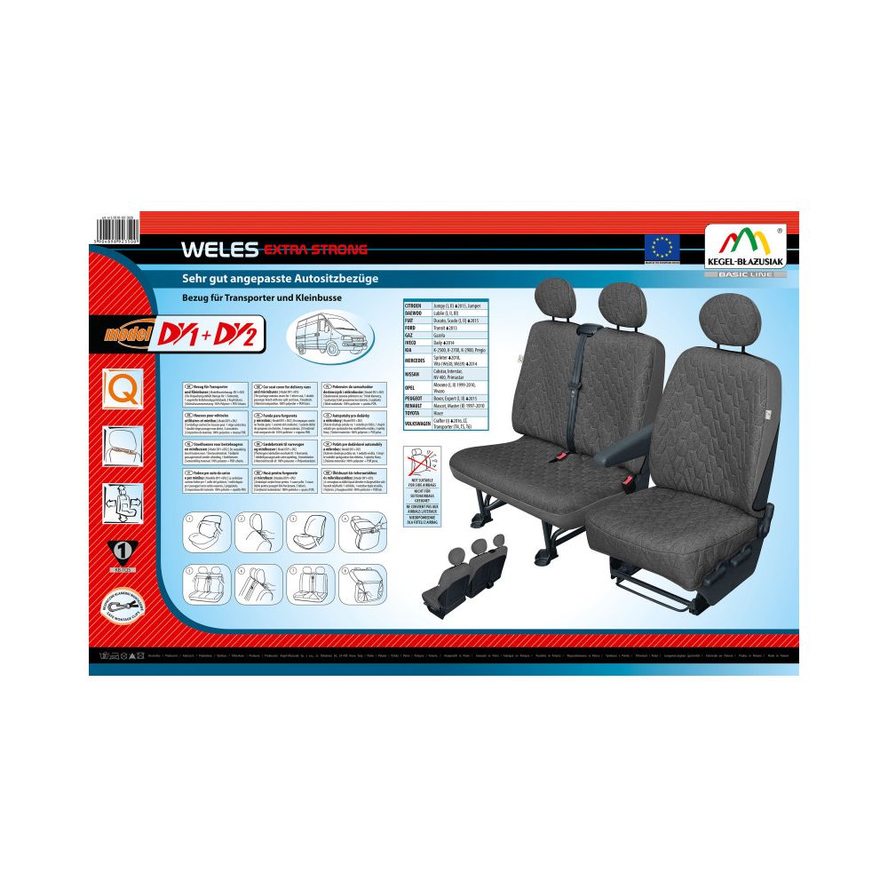Skånebetræk universal til varebiler - Weles Extra Strong DV1 + DV2 - 100% polyester med PUR skum