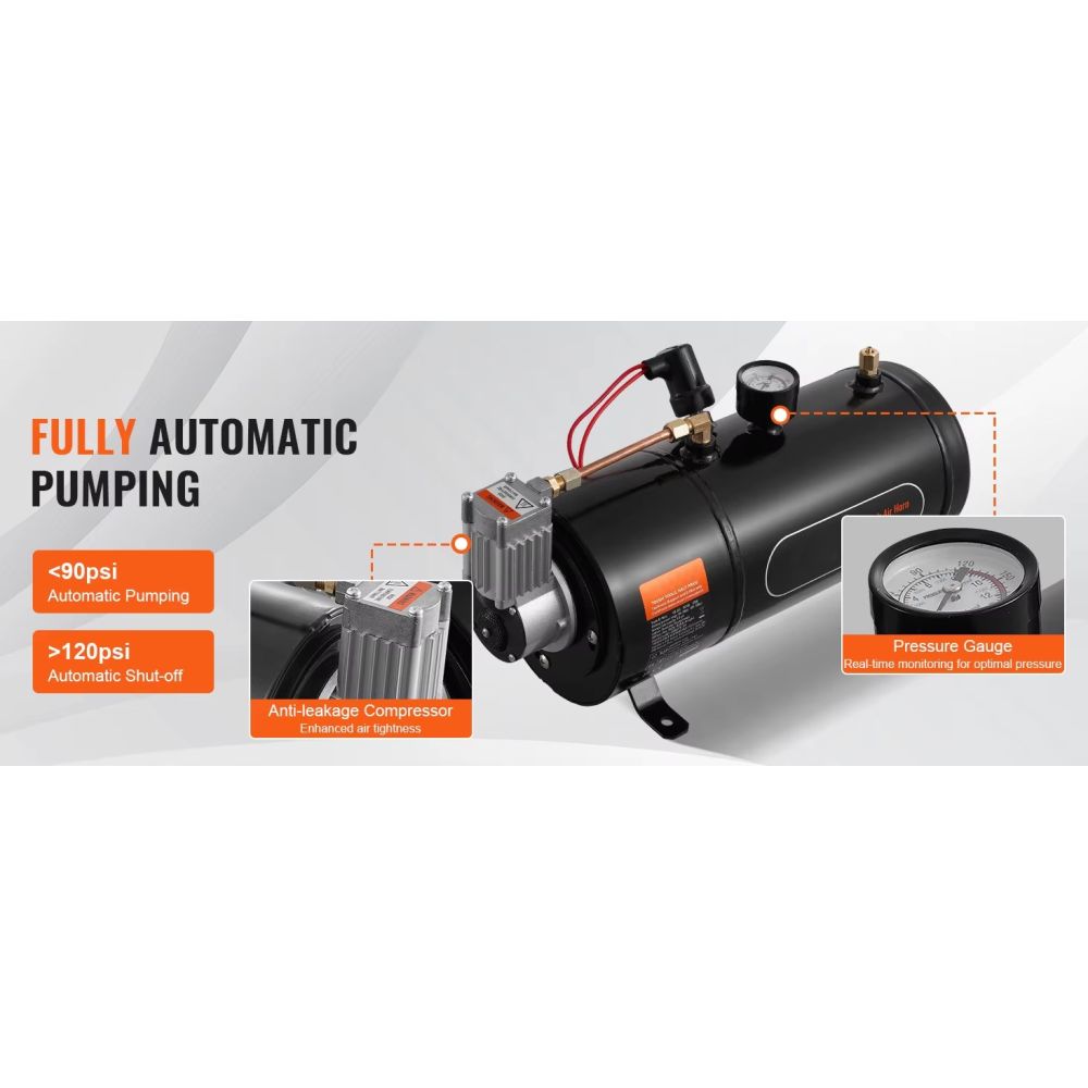 Kompressorhorn kittet leveres med 1x kompressor, 1x 4-tonet tragte, luftslange, sikringsholder med sikring og monteringsbeslag.