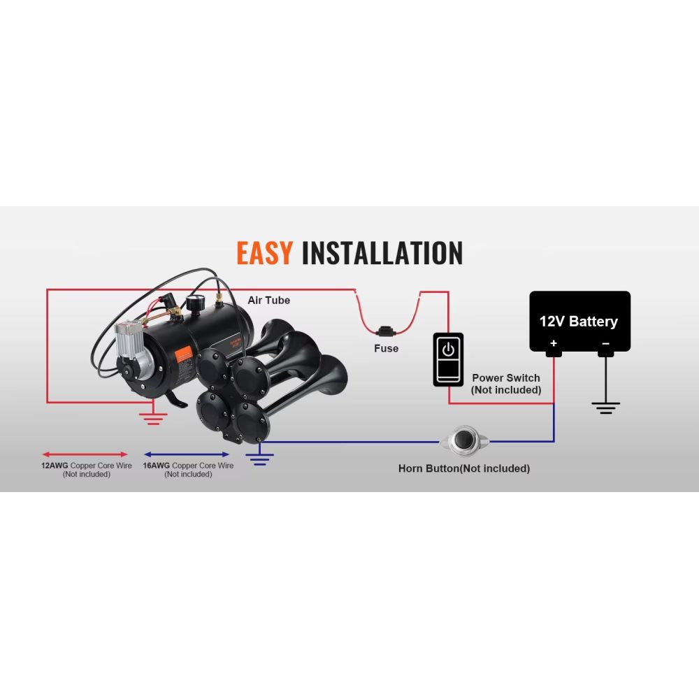Kompressorhornet er nem at montere, det er derfor ikke nødvendigt at ansætte en professionel til at monterer hornet. Du kan bruge det når som helst og hvor som helst. Hornet er velegnet til bil, lastbil, motorcykel, både m.m.