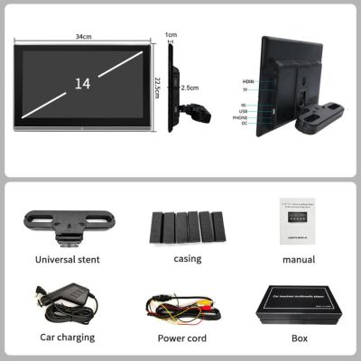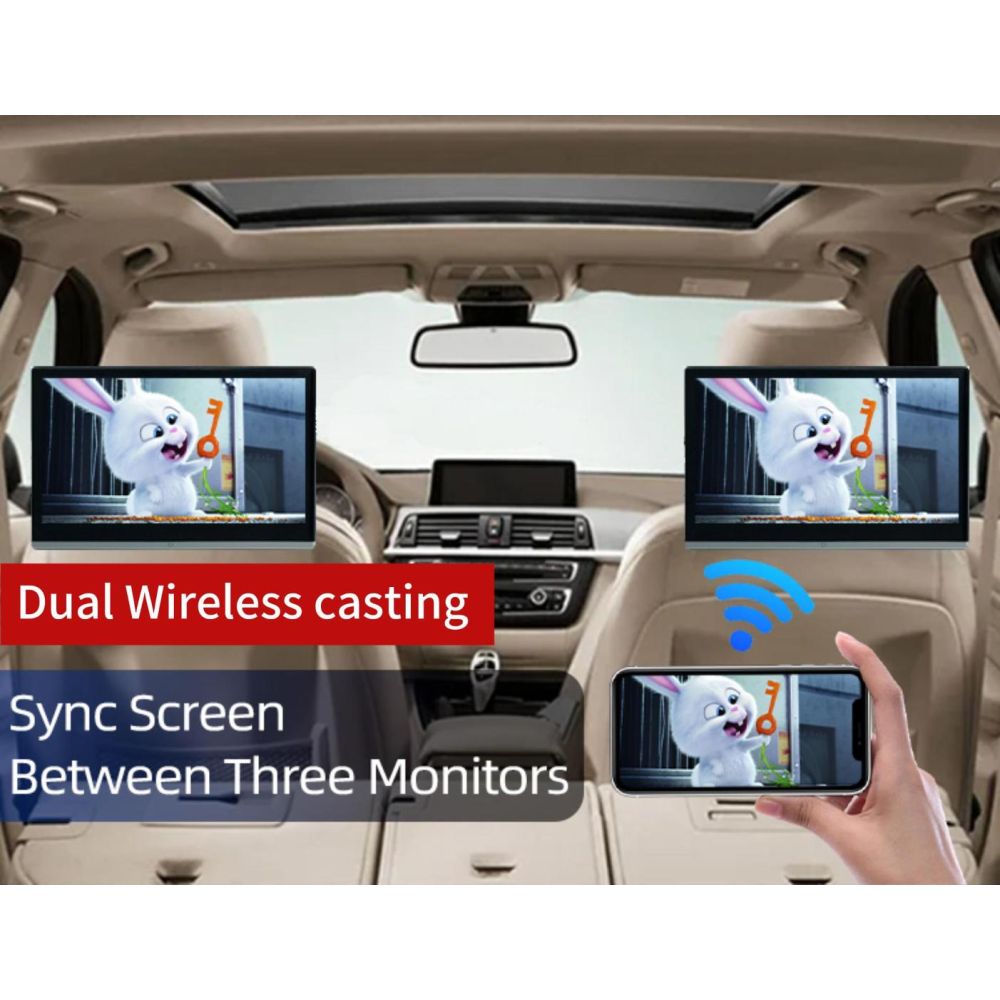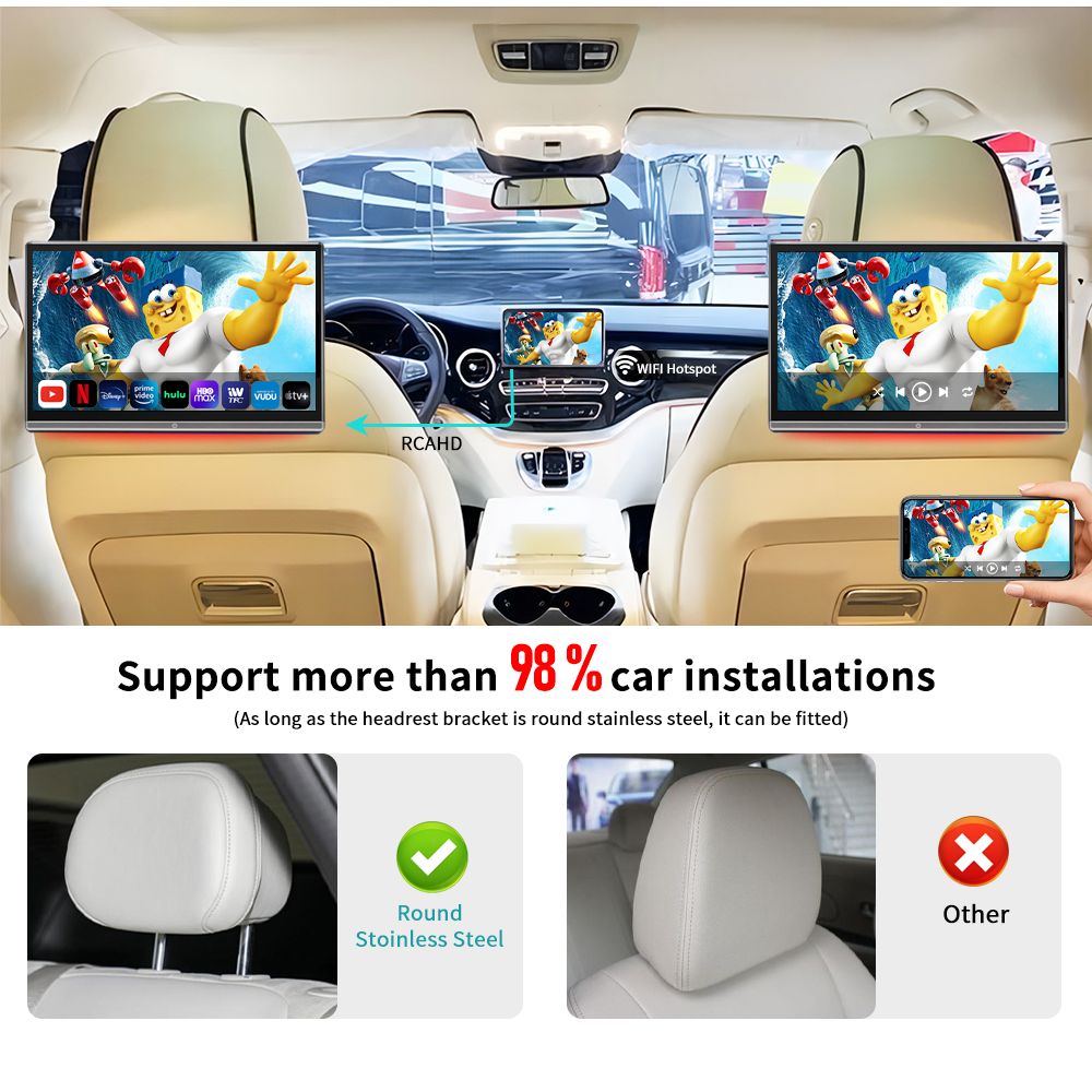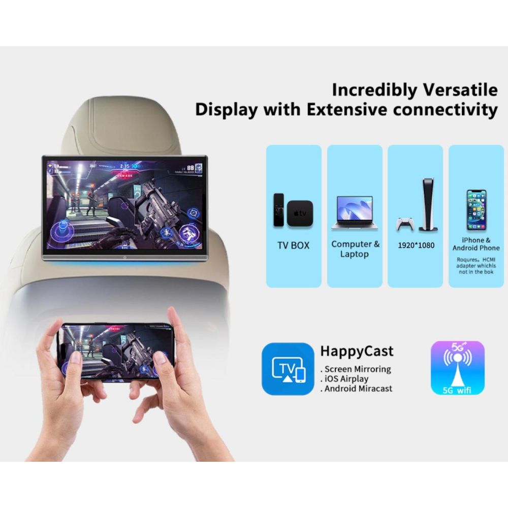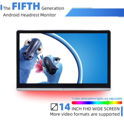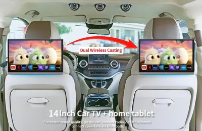 Skærm til nakkestøtte 14,1" - Med trådløs skærmdeling, FM, Bluetooth, WiFi, HDMI- og A/V-indgange - Android 13 styresystem