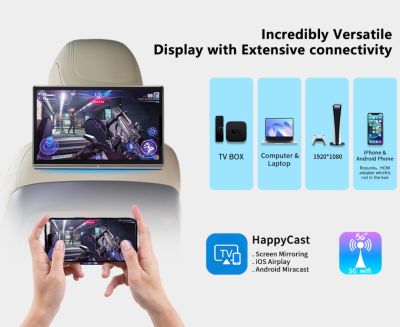 Monitoren er desuden udstyret med HDMI- og A/V-indgange, indbygget Wi-Fi og Bluetooth, stemningsfuld 7-farvet ambient belysning samt forbedrede sikkerhedsfunktioner. Alt sammen gør den til en ideel løsning til at gøre både korte og lange køreture mere underholdende og komfortable for passagererne på bagsædet.