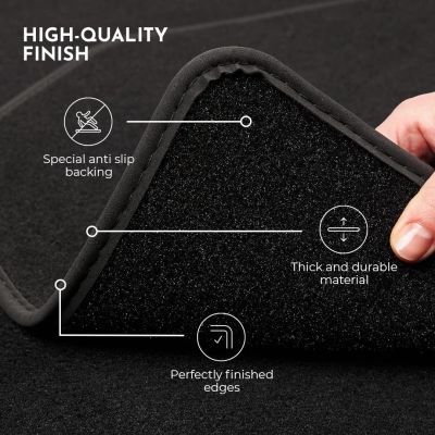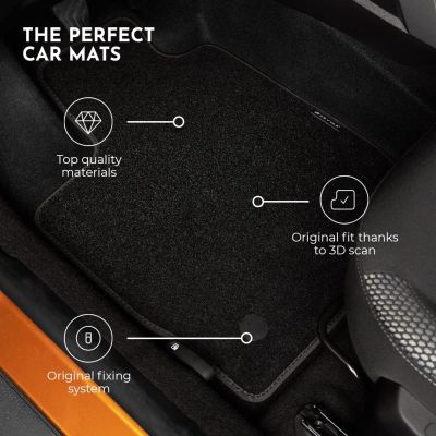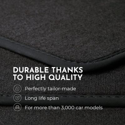 Måtterne er skræddersyede til de enkelte bilmodeller og passer også til biler med originale måttelåse. Den perfekte pasfom sikrer, at bilens originale stof bliver beskyttet, mest muligt. Sættet leveres i 1 stor måtte. Selve produktionen ligger placeret i Europa, hvilket garanterer højt kvalitets-niveau og hurtig levering. Resultatet er mere elegant og samtidig mere skånsom for fodtøjet. OBS: Modelfoto
