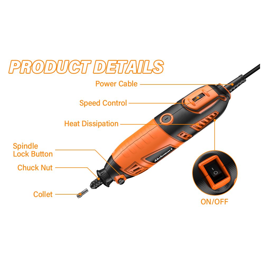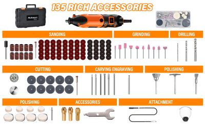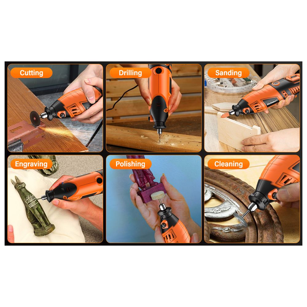 Smart og pratisk 230V multisliber til præcis slibning, boring, fræsning, rengøring, rustfjernelse, polering, gravering, klipning og skæring til perfektion! Dette værktøjssæt indeholder 135 dele, og er kendetegnet ved lav vægt, super praktisk, høj kvalitet og et godt håndgreb.