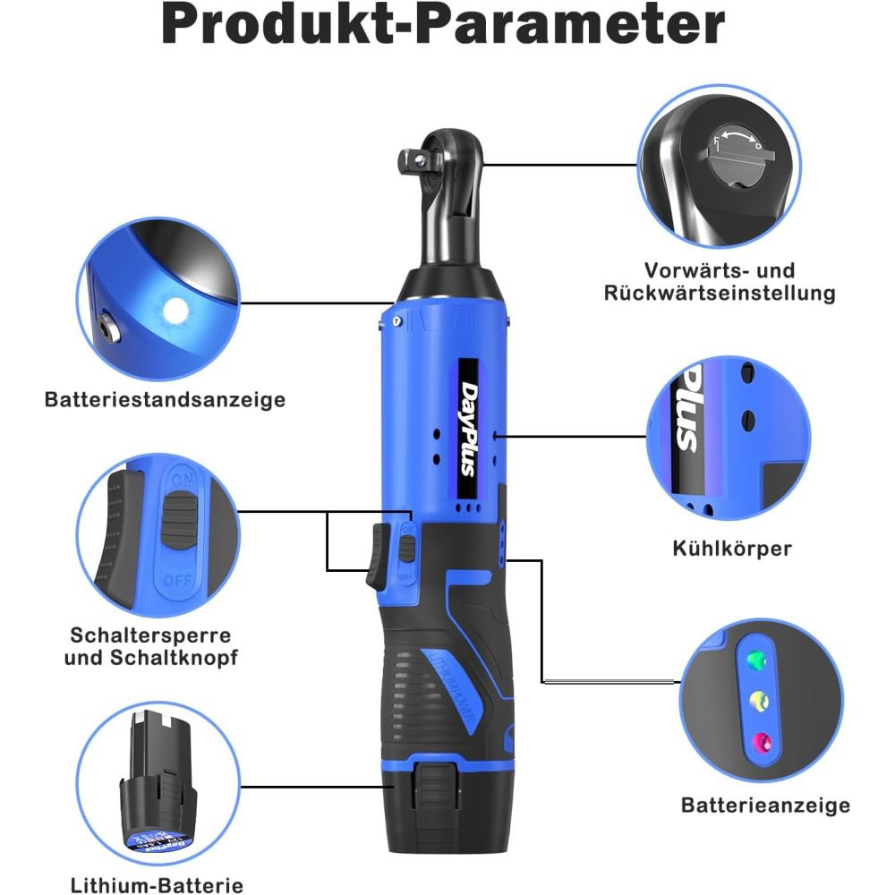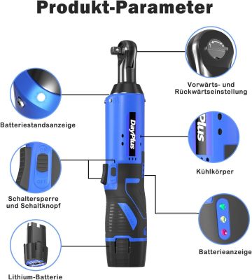 Den elektriske skraldenøgle har en 12V højtydende motor og et drejningsmoment på op til 40 Nm. Med en trådløs skraldenøgle kan du fjerne eller spænde møtrikker og bolte hurtigt og ubesværet. Skraldenøglen med ergonomisk design, giver enestående momentpræcision samt øget produktivitet og sikkerhed. Den elektriske skraldenøgle kommer med indbygget LED-belysning, så du kan arbejde komfortabelt selv i mørke aftener.
