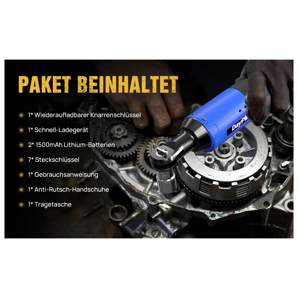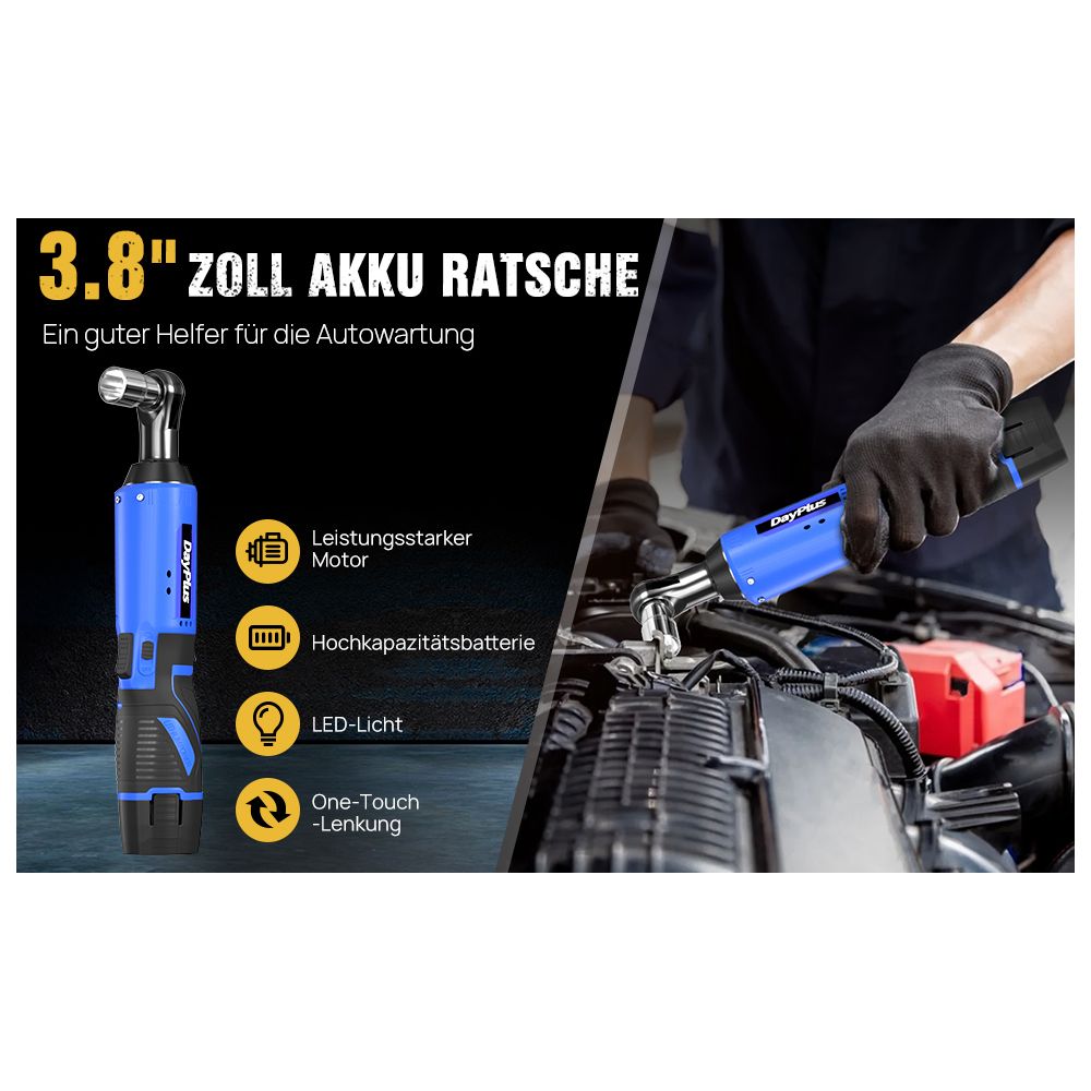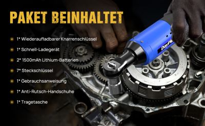 Denne skraldenøgle har en variabel hastighedskontroludløser, der kan låses ved 300 omdr./min og hjælper dig med at kontrollere, mens du arbejder. 12V skraldenøglen bliver leveret med 2x højkvalitets 1500mAh lithiumbatterier, 7x toppe og hurtigoplader. Skraldenøgle er kompakt samt en lav vægt, som gør den utrolig brugervenlig. Den kompakte slanke design og 3/8'' tilslutningen, gør det nemt at nå alle snævre steder for at løsne eller stramme møtrikker og bolte.