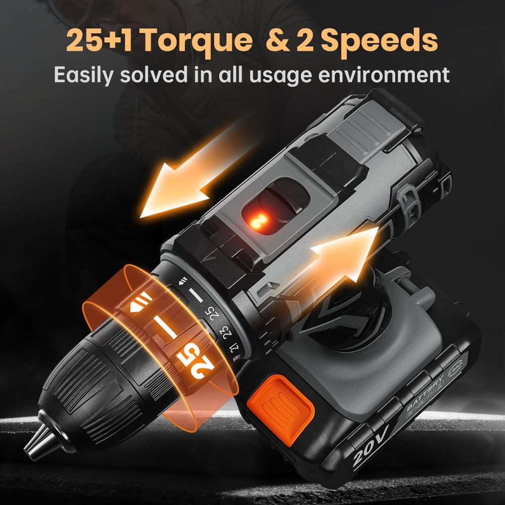 Det behøver du ikke bekymre dig om længere. FAHEFANA leveres med 2x 2000 mAh batterier med høj kapacitet samt en hurtigoplader. Ved at skifte mellem de to batterier tager det kun en time at oplade et tomt batteri helt igen, så du kan sige farvel til frustrationen ved lavt batteriniveau. Den højtydende motor med et drejningsmoment på hele 42 Nm sikrer stabil og kraftfuld drift. Du får 25+1 momentindstillinger samt momentbeskyttelse, så du kan tilpasse kraften efter opgaven og undgå skader fra for højt drejningsmoment.