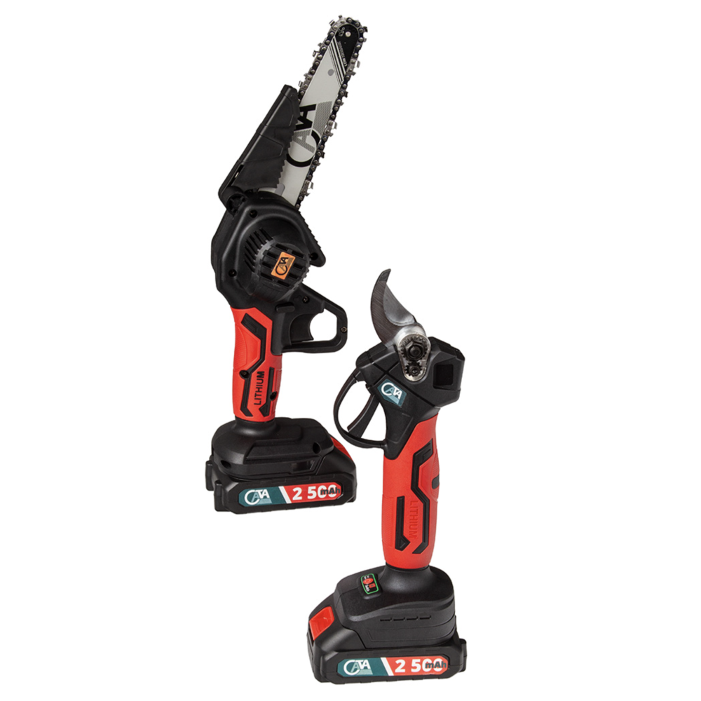 Dette praktiske og alsidige sæt med batteridrevet beskæresaks og kædesav er den ideelle løsning til effektivt havearbejde. Kombinationen af et ergonomisk designet håndtag og skarpe, præcise klinger sikrer en komfortabel, hurtig og ubesværet arbejdsoplevelse – selv ved længere tids brug. Den batteridrevne kædesav er perfekt til beskæring og afskæring af grene. Takket være den lave vægt er den særligt velegnet til arbejde i højden, hvor fleksibilitet og kontrol er afgørende. Den kompakte størrelse gør det nemt at komme til på steder, hvor traditionelle save ikke kan nå på grund af deres størrelse. Sættet giver dig maksimal bevægelsesfrihed uden ledninger og er oplagt til både private haveejere og professionelle brugere, der ønsker effektivitet, mobilitet og pålidelig ydeevne i ét samlet kit.