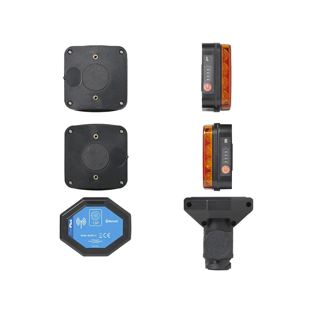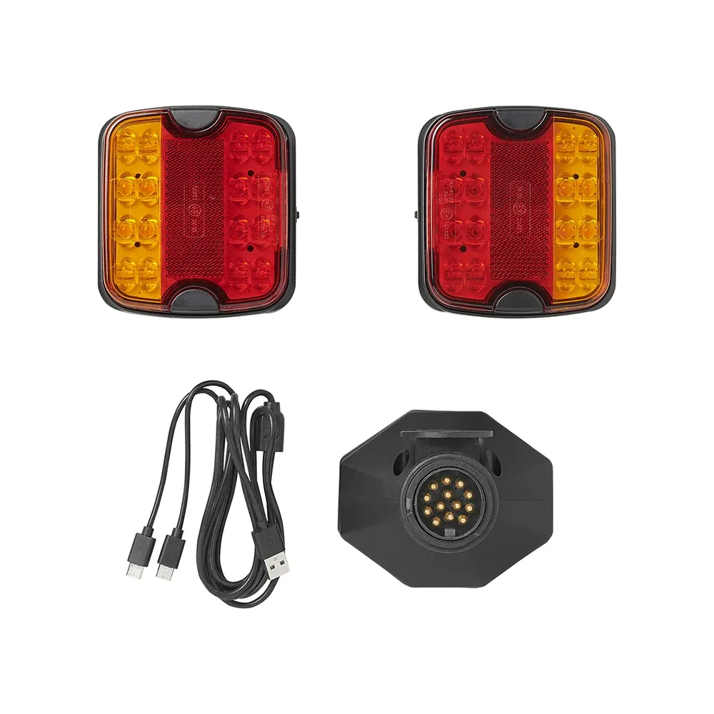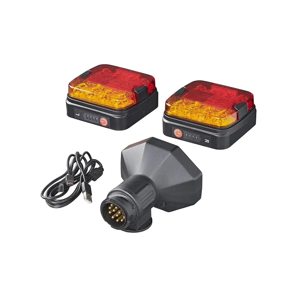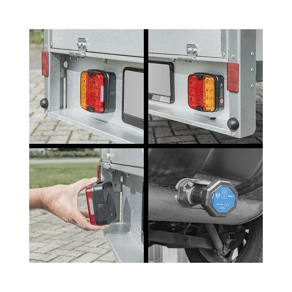 Dette smarte og praktiske trådløse baglygte-sæt gør det nemt at få korrekt og synlig belysning på din trailer – helt uden besværet med ledninger. Sættet er hurtigt at montere og fungerer pålideligt under alle forhold, hvilket gør det ideelt til både privat og professionelt brug. Med indbygget Bluetooth-teknologi (version 5.0) sikres en stabil og hurtig forbindelse mellem trailer og køretøj. Systemet er udviklet til at kunne modstå krævende vejrforhold og er IP64-testet, hvilket betyder, at det er støv- og stænktæt.