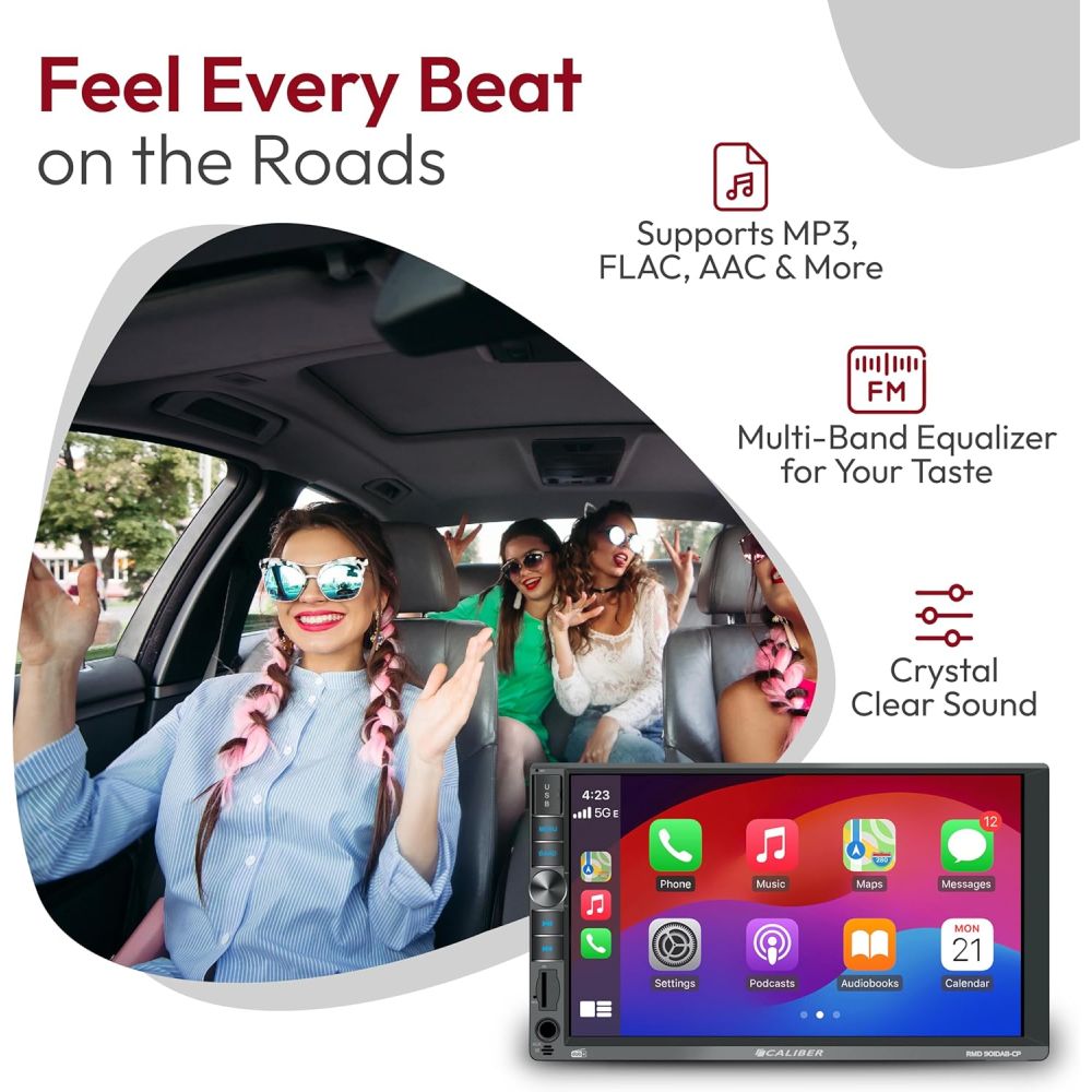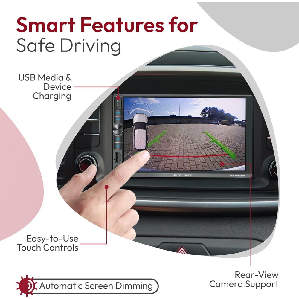 Caliber RMD901DAB-CP er en 2DIN autoradio med en 7'' touchskærm, designet til at tilbyde avanceret funktionalitet med moderne tilslutningsmuligheder. Den understøtter DAB+ radio, trådløs Apple CarPlay, Android-screen mirroring via app, Bluetooth funktioner (hands-free og streaming), og har flere input/output muligheder inklusiv kameraindgange. Skærmen og knapperne kan reguleres automatisk, hvilket gør den behagelig at bruge både dag og nat. Ud over almindelig radio og medieafspilning (fra USB, SD, AUX) kan den også styre video, billeder og har subwooferudgang.