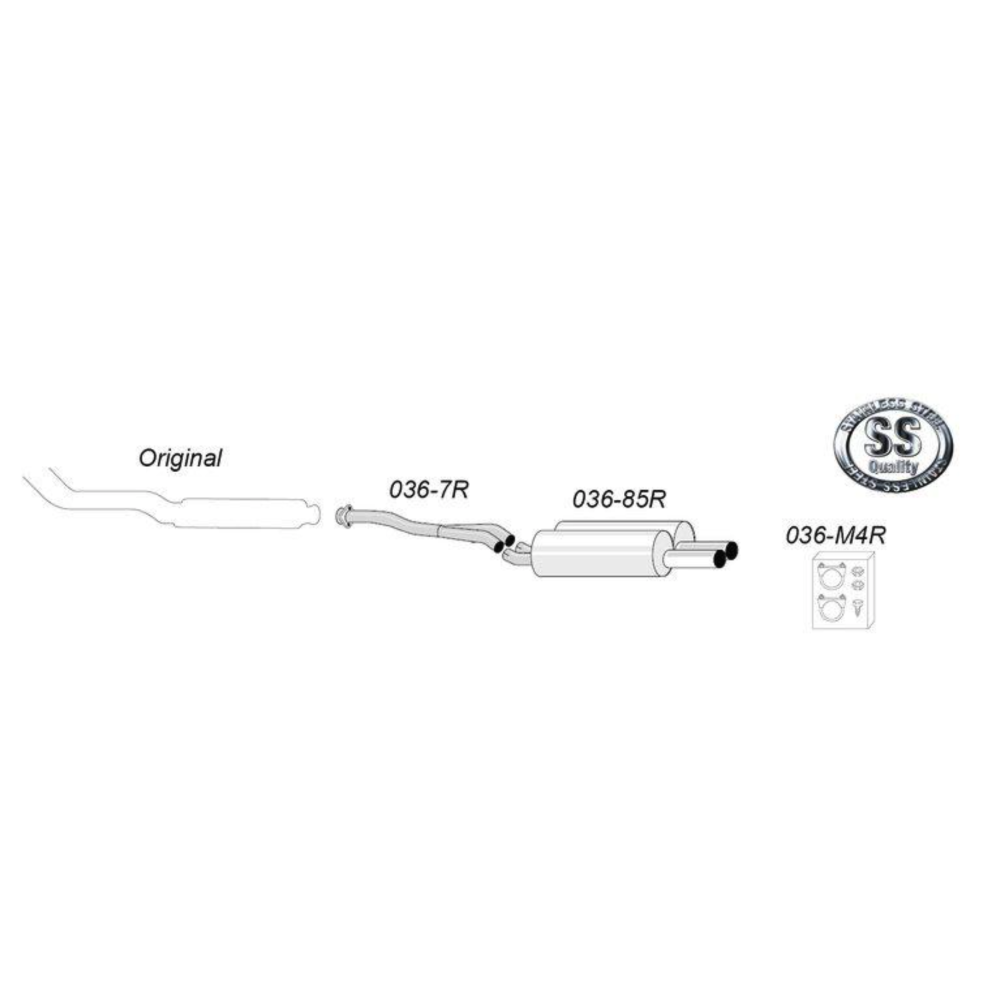 Systemet har større rørdimension end originalt og leveres enten som komplet sæt eller som halvsæt uden forrør. Til enkelte bilmodeller leveres kun bagdæmperen. SIMONS Sportssystem har højeste kvalitet i materialer, finish og konstruktion baseret på mange års erfaring. SIMONS udstødning med 5-8% højere effekt, sportslig lyd og sportslig afgangsrør. Lavt modtryk giver lavere benzinforbrug. Lang levetid som følge af den gode kvalitet.