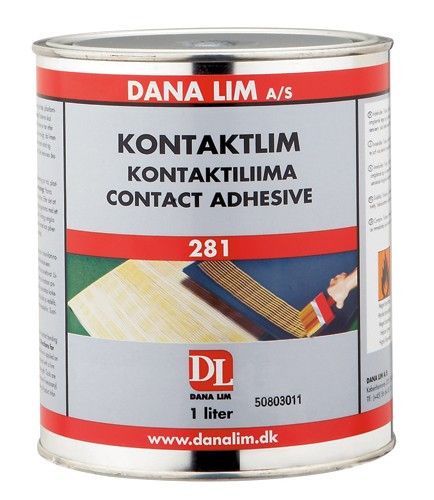 DANA kontaktlim 281 er en universal all-round neoprenbaseret letflyende lim, til limning af tætte flader samt til limninger hvor der ønskes øjeblikkelig høj styrke. Kontaktlim 281 er velegnet til limning af træ, spånplader, filt, læder, glas, skumstoffer, kunstgummi, vinyl, tekstil m.m.