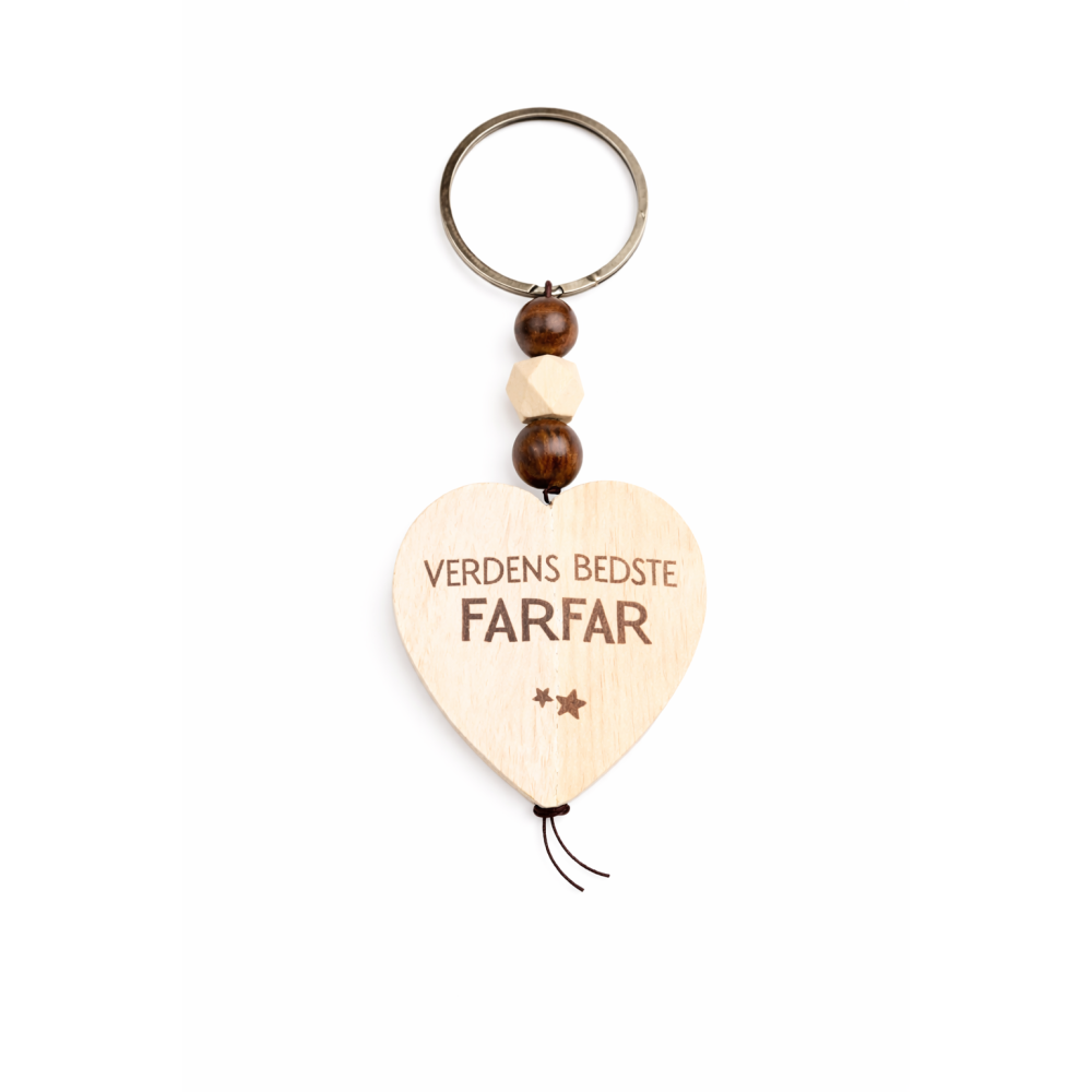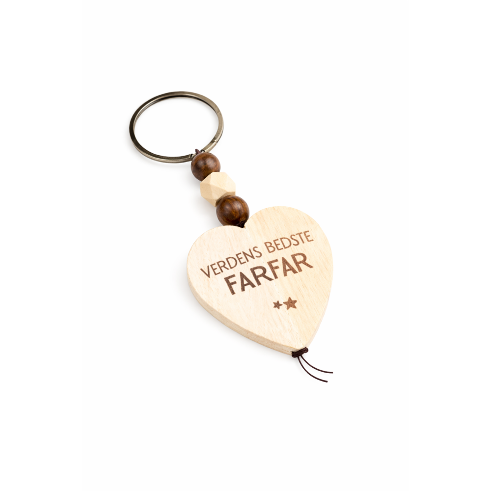Giv en lille gave med stor betydning. Denne smukke nøglering i træ er den perfekte måde at vise din farfar, hvor meget han betyder for dig. Den fine hjerteform og den indgraverede tekst “Verdens Bedste Farfar” gør den til en personlig og kærlig gave, som hun kan have med sig hver dag.