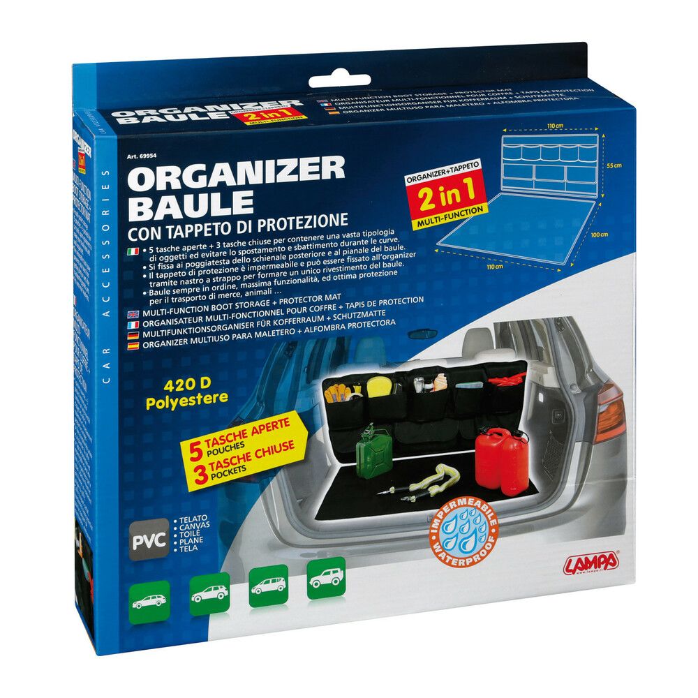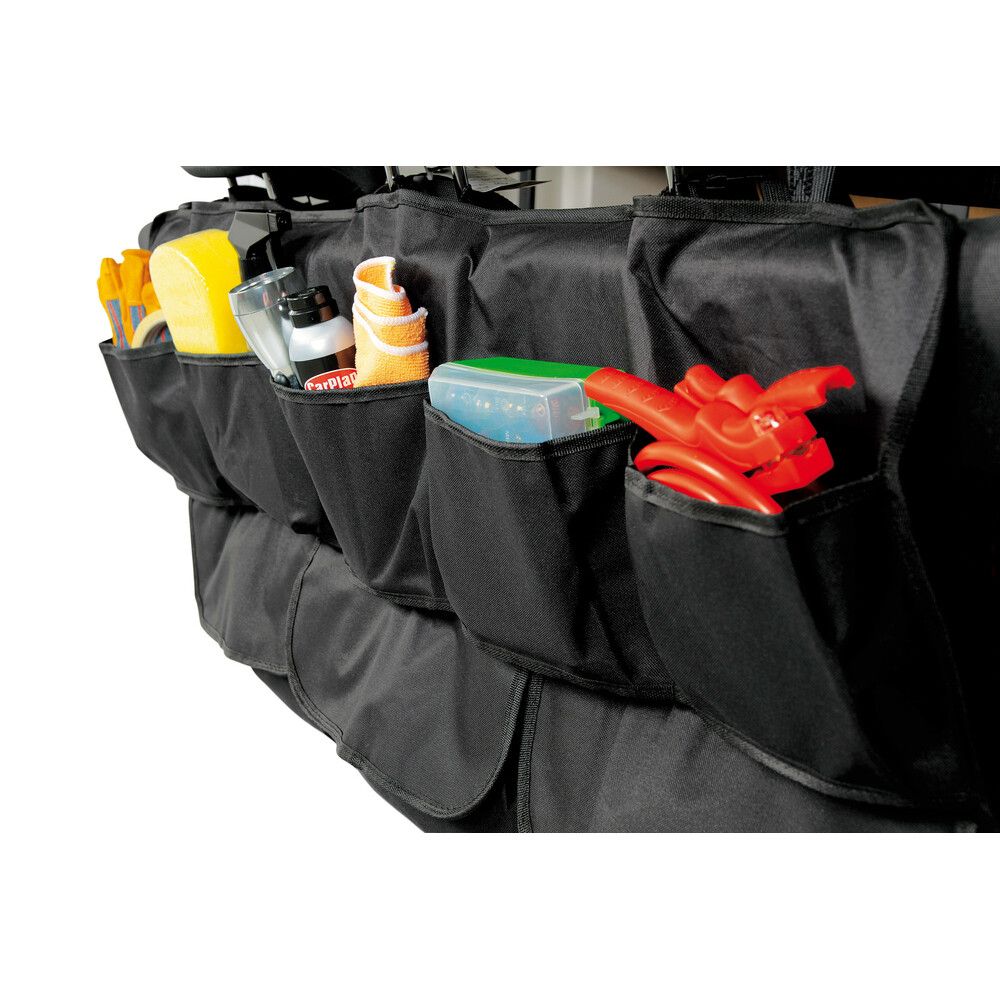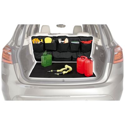 Denne praktiske bagagerums- og beskyttelsesmåtte giver dig både ekstra opbevaringsplads og effektiv beskyttelse af bilens bagagerum. Med i alt 8 lommer (5 store og 3 mindre) er den ideel til bilværktøj, sportsudstyr, tilbehør og andre genstande, så du altid kan holde bagagerummet organiseret.