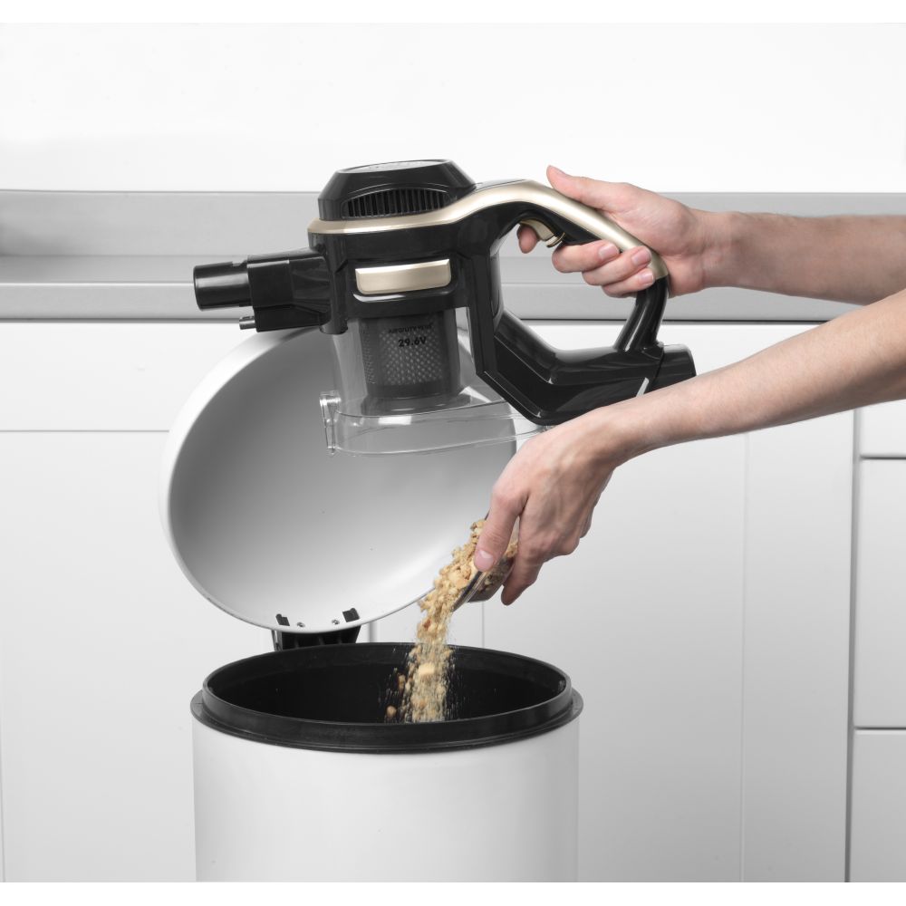 Beldray BEL01195V2FVDE Airgility+ er en kraftfuld og praktisk ledningsfri støvsuger, der gør den daglige rengøring både nemmere og mere fleksibel. Den smarte 2-i-1 konstruktion gør det muligt hurtigt at omdanne støvsugeren fra en almindelig stangstøvsuger til en kompakt håndstøvsuger, hvilket gør den ideel til rengøring af gulve, tæpper, møbler, trapper og bilen. Den ledningsfri funktion giver fuld bevægelsesfrihed i hjemmet, så du kan støvsuge uden at være begrænset af kabler eller stikkontakter.