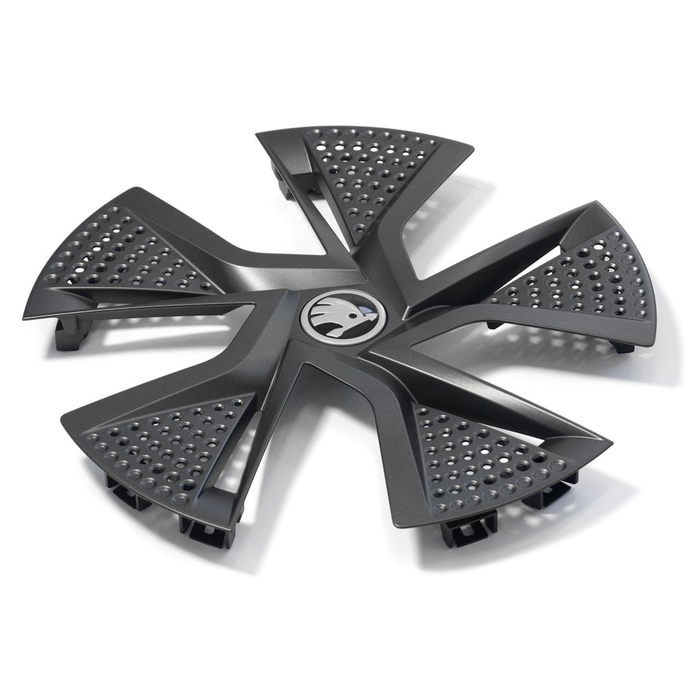 Skoda 16" originale (OEM) hjulkapsler med sort Skoda logo. Hjulkapslerne monteres med kraftige fæstneclips som holder dem på plads. Kapslerne er nemme at rengøre, leveres af 1 stk.