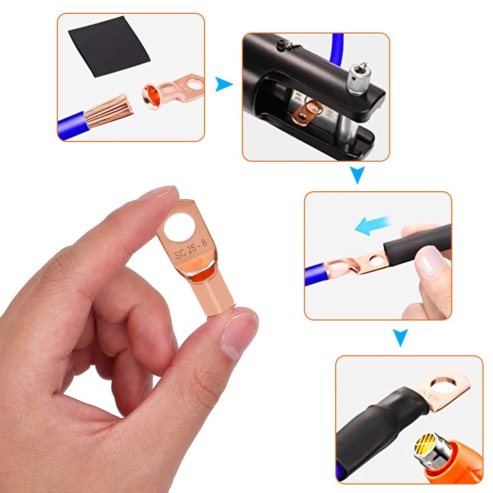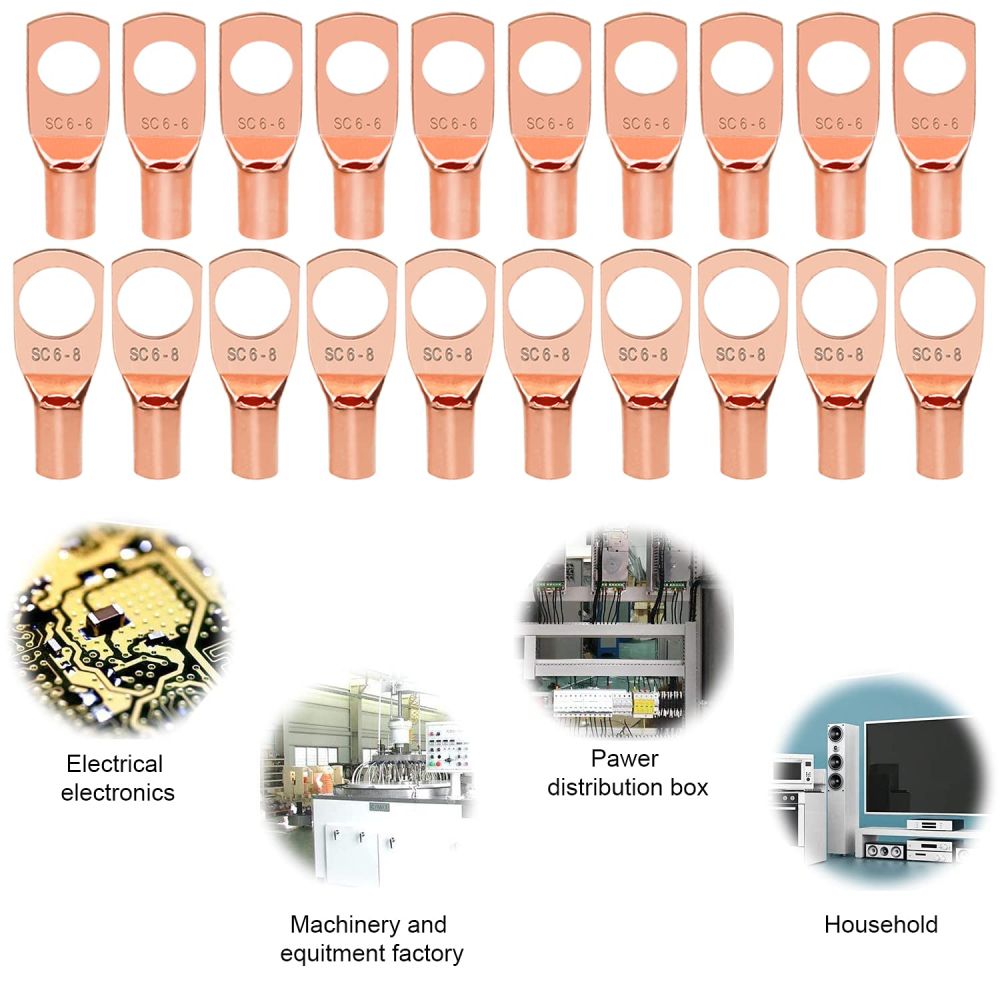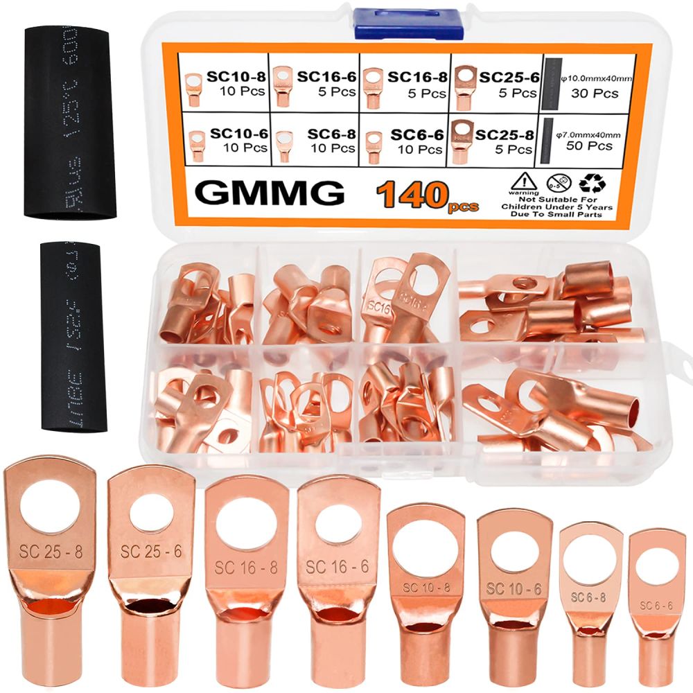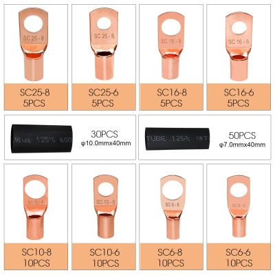 Kobber kabelsko sortiment med 60 stk. uisolerede kabelsko i 8 forskellige størrelser og 2 forskellige størrelser krympeflex. Ringterminaler lavet af rent kobber med stærk holdbarhed, med super god ledningsevne. Et tyndt lag tin vil beskytte kabelskoen mod korrosion.