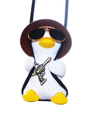Figuren bindes nemt rundt om bilens bakspejl via den 20 cm lange snor som medfølger. Figuren kan også anvendes som dekoration til hjemmet eller kontoret. Figur højde 75 mm.
