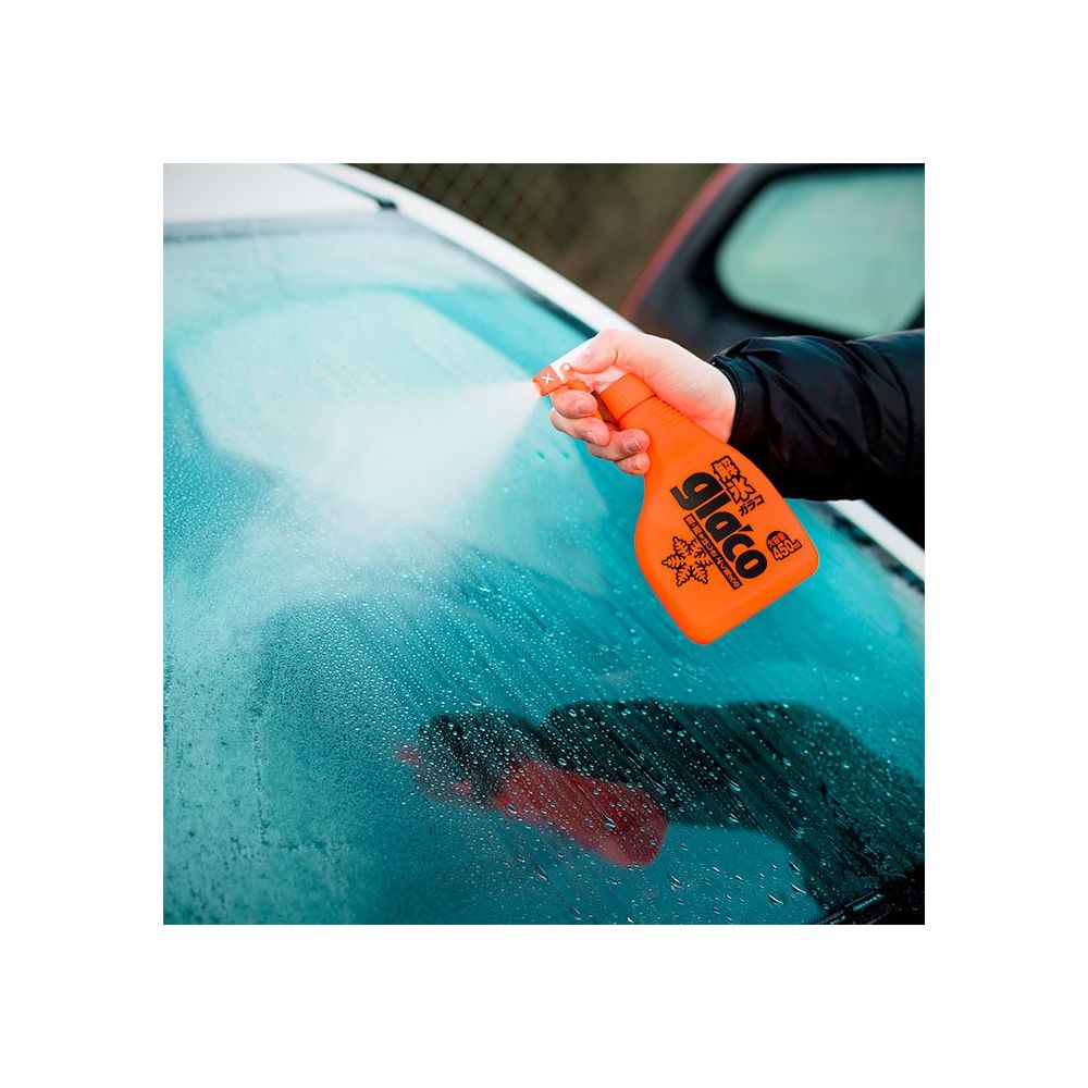Glaco Deicer fjerner hurtigt is og sne fra bilruder og efterlader samtidig en vandafvisende, hydrofobisk belægning, der modvirker ny tilfrysning. Produktet fungerer også som en “usynlig visker”, der får vand til at perle af ruden, når bilen er i fart. For optimal effekt kan forstøveren justeres efter behov. Indhold: 450 ml.