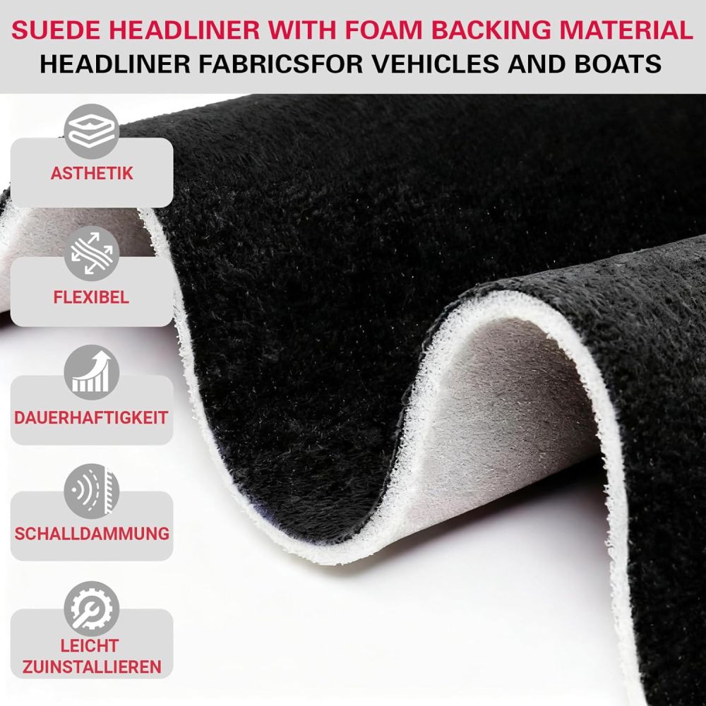 Dette eksklusive stof til loftet er fremstillet i slidstærkt alcantara kombineret med en 4 mm tyk af højelastisk skum, som giver en luksuriøs, blød overflade og en langtidsholdbar løsning. Materialet er smudsafvisende, nemt at rengøre og modstandsdygtigt over for både slid og udstrækning, hvilket sikrer et flot resultat i lang tid. Den fleksible og behagelige struktur gør det ideelt til både bilindretning og boligprojekter, hvor det bidrager til et elegant og professionelt udtryk.