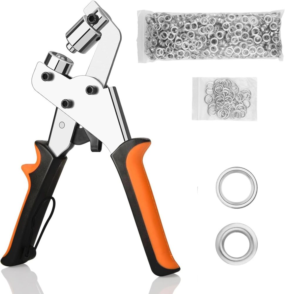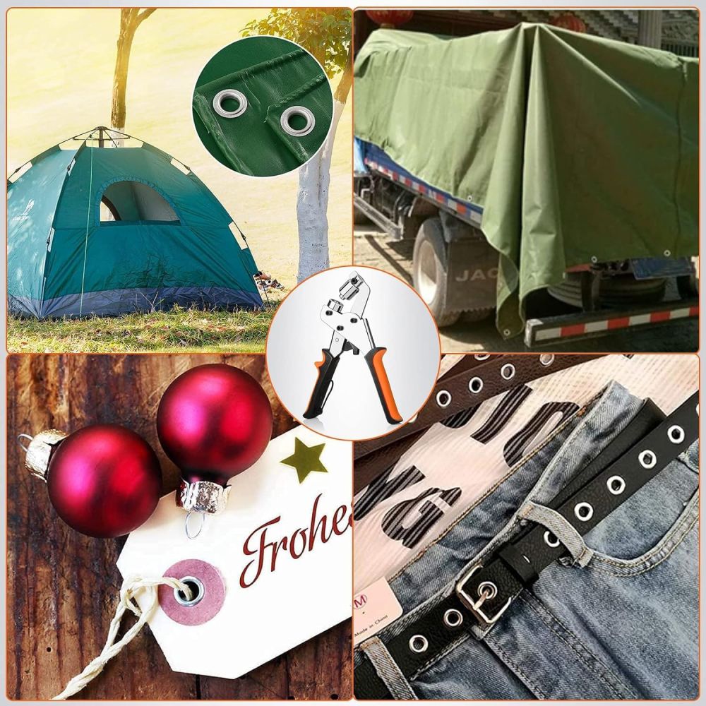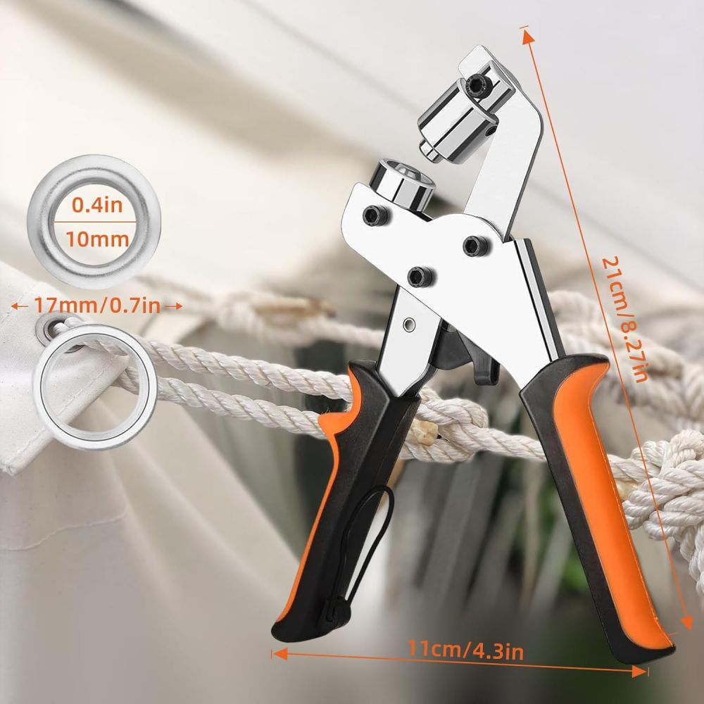 Vores 10 mm hultang gør arbejdet let takket være det ekstra lange håndtag og det speciel udviklet håndtag, som kræver 20% mindre kraft. Dette sæt er velegnet til en bred vifte af anvendelser, herunder presenninger, vinyl, bannere, tøj, tasker, dækningsmaterialer, markiser, kunstlæder og gardiner med mere. Den rustbestandige sølvbelægning er fremstillet af forkromet metal, og den avancerede hultang i varmehærdet stål sikrer maksimal holdbarhed og sikkerhed. Magnetiske matricer fastgør øjet og skiven præcist som ønsket, hvilket reducerer risikoen for forskydning ved montering af forskellige øjer.
