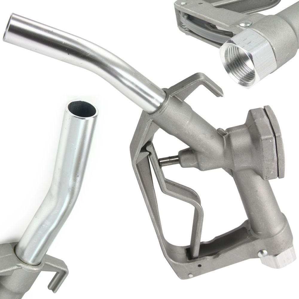 Tankpistol med 1" tilslutning produceret i aluminium. Kvalitet tank håndtag med 3-trins justering som er Velegnet til benzin, dieselolie (og andre olier) samt petroleum. Mål på tankpistolstuds indvendig 20 mm og udvendig 24 mm. Vægt 0,800 kg.