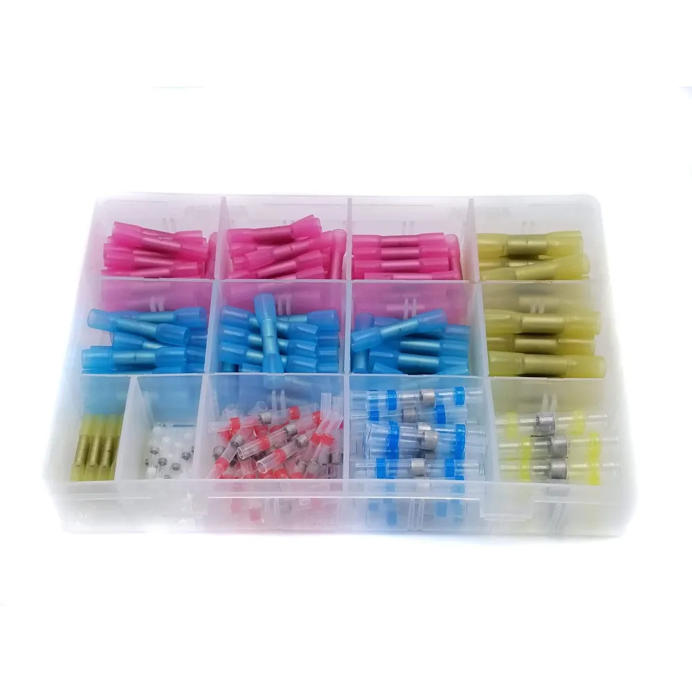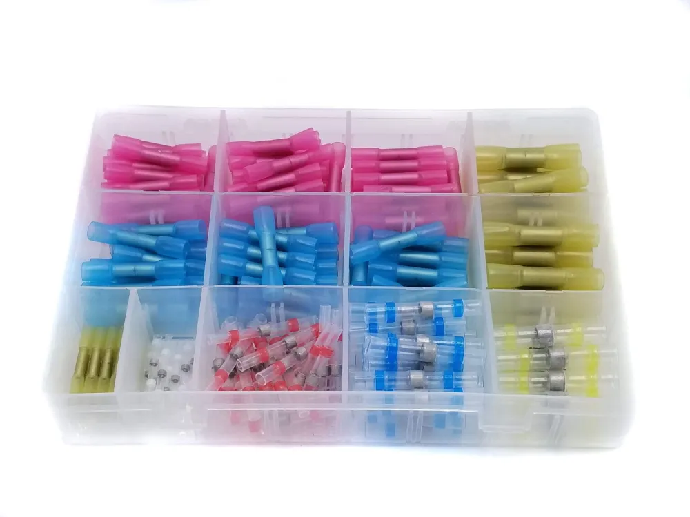For opnå de bedste resultater skal du bruge den med en varmepistol, indtil den er reduceret i størrelse, og klæbemidlet flyder for at fylde hullerne i loddemuffen. Sættet indeholder 75 stk. loddemuffer og 135 stk. krymbekabelsko. Det er muligt at se hvilke størrelser der er i sættet nedenunder.