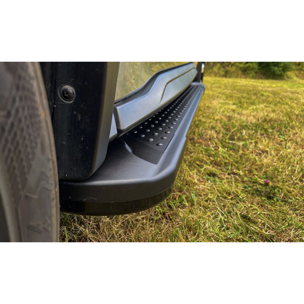Udover at gøre det bekvemt at komme ind og ud af bilen, beskytter trinbrættet også mod ridser fra hverdagens trafik, såsom kantsten, parkeringspladser osv. En funktionel beskyttelse af bilen. Brættene er produceret med en skridsikker overflade.