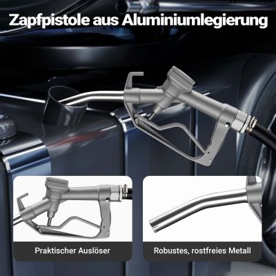 Betjeningen er enkel og sikker. Det fire meter lange strømkabel med batteriklemmer giver fleksible tilslutningsmuligheder, og tanken kan desuden drives via en 12 V stikforbindelse. Den medfølgende 0,5 meter sugeslange bruges til påfyldning, mens en fire meter lang udløbsslange og en præcis tappepistol gør tankningen nem og kontrolleret. Den mobile tankstation kan anvendes til både diesel og benzin, hvilket gør den yderst alsidig. Den egner sig perfekt til brug på byggepladser, i landbruget eller til private formål, hvor mobil brændstofforsyning er nødvendig. Den robuste konstruktion sikrer både sikkerhed og holdbarhed, så du kan stole på, at anlægget fungerer problemfrit i mange år.