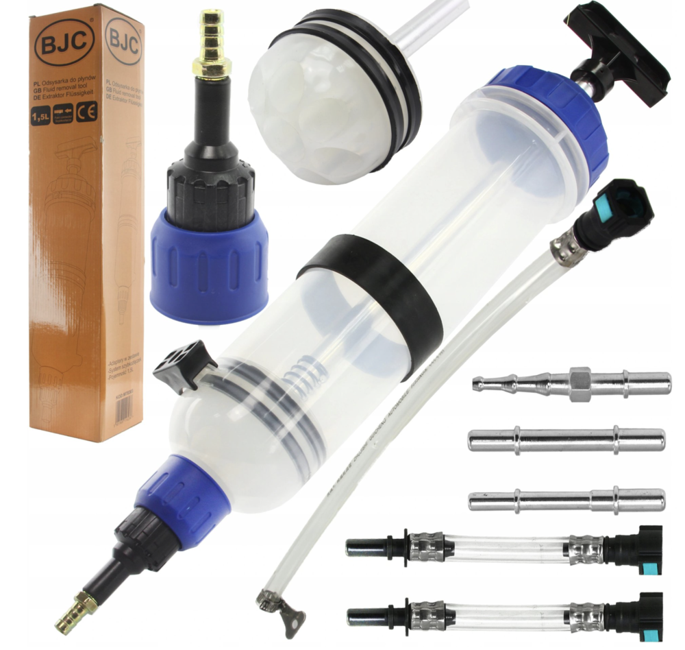 Olieudtrækningssprøjten er et uundværligt værktøj i ethvert autoværksted. Den er designet til både at suge og fylde olie samt andre væsker på svært tilgængelige steder. Stemplet er udstyret med en tætningsring af høj kvalitets gummi, som er modstandsdygtig over for langvarig kontakt med smøremidler og olier. Sprøjten har en kapacitet på 1,5 liter og leveres med lynkoblinger til PSA-, Opel- og Vauxhall-køretøjer samt to universelle adaptere, der passer til ældre biler.