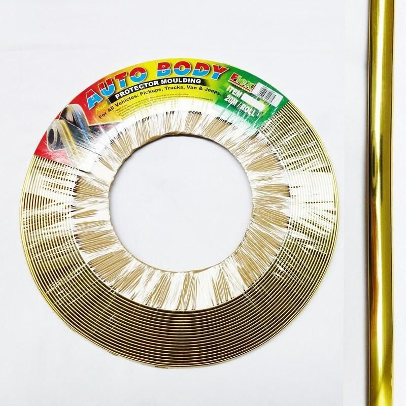 Universal pynteliste sælges i løbende meter i guld. Flot blank og dekorativ, kan også anvendes som beskyttelsesliste til bilen. Pyntelisten kan monteres både indvendig og udvendig. Anvendes til bilen, båden, campingvognen, motorcyklen m.m. Monteres via selvklæbende 3M tape, tapen er monteret på listen. Fremstillet i fleksibelt og elastisk materiale, som gør det muligt at monterer omkring hjørner og kurver.