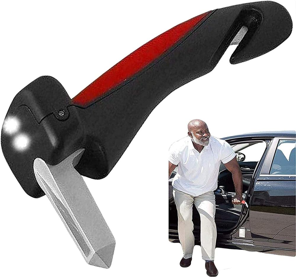 Smart og praktisk universal håndtag, som gør det nemmere at stige ud af bilen. Håndtaget er et multifunktionelt redskab til bilen. Sæt blot støttehåndtaget i bøjlen ved låsen i dørrammen, så har du et ekstra håndtag, der hjælper dig ind og ud af bilen. Støttehåndtaget har 4 funktioner. Seleskærer, nødhammer, støttehåndtag og har belysning. Håndtaget er let og tilgængeligt, effektiv hjælpemiddel til folk med begrænset mobilitet i hverdagen.