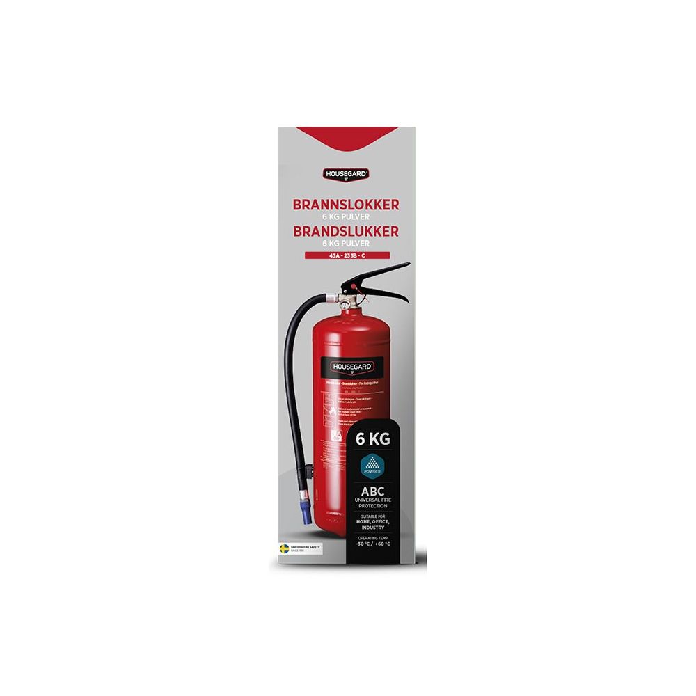 Med en 6 kg pulverslukker fra Housegard i bilen, øger du sikkerheden på vejen eller i hjemmet, hvis uheldet skulle være ude. Brandslukkeren har den højeste slukkeeffekt på 43A 233B C, og er ideel til større brande der kan forekomme. Housegards pulverslukkere er certificerede og kvalitetssikrede af DNV.