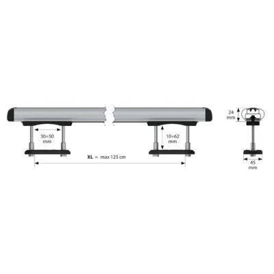 Dette sæt tagstænger i str. XL måler 137 cm og passer til tagrælinger, med en max. afstand på 125 cm. Stængerne kan holde til en max. belastning på 100 kg og er GS-TÜV godkendt. (Se under billeder hvordan monteringsbeslagene kan justeres)