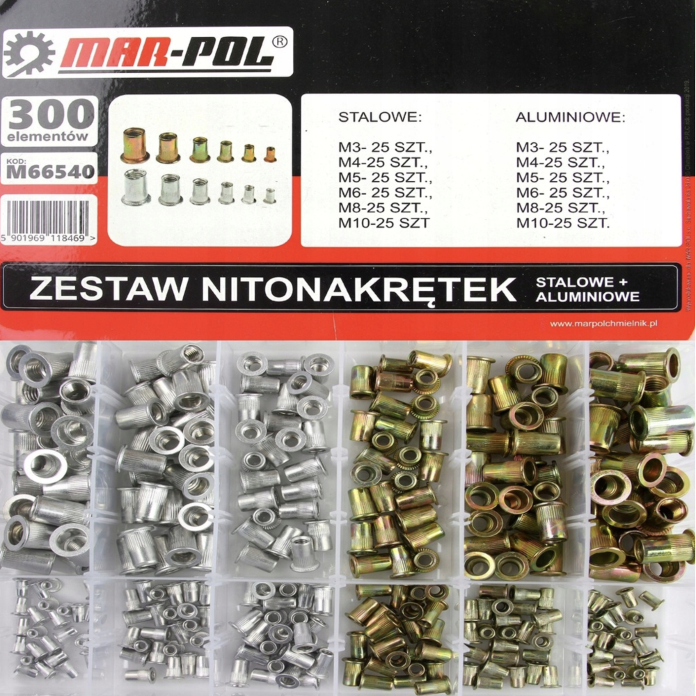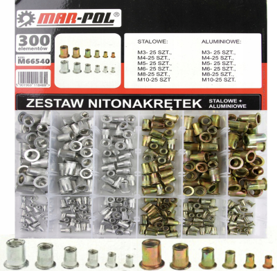Få et komplet sæt med nitte-møtrikker i både stål og aluminium – perfekt til reparationer, montage og gør-det-selv projekter. Med dette sæt kan du hurtigt og nemt skabe stærke gevind i tyndpladematerialer, hvor det ellers ikke er muligt at skære et gevind. Sættet leveres i en praktisk sortimentskasse, så du altid har overblik over størrelserne og hurtigt finder den rigtige møtrik til opgaven.