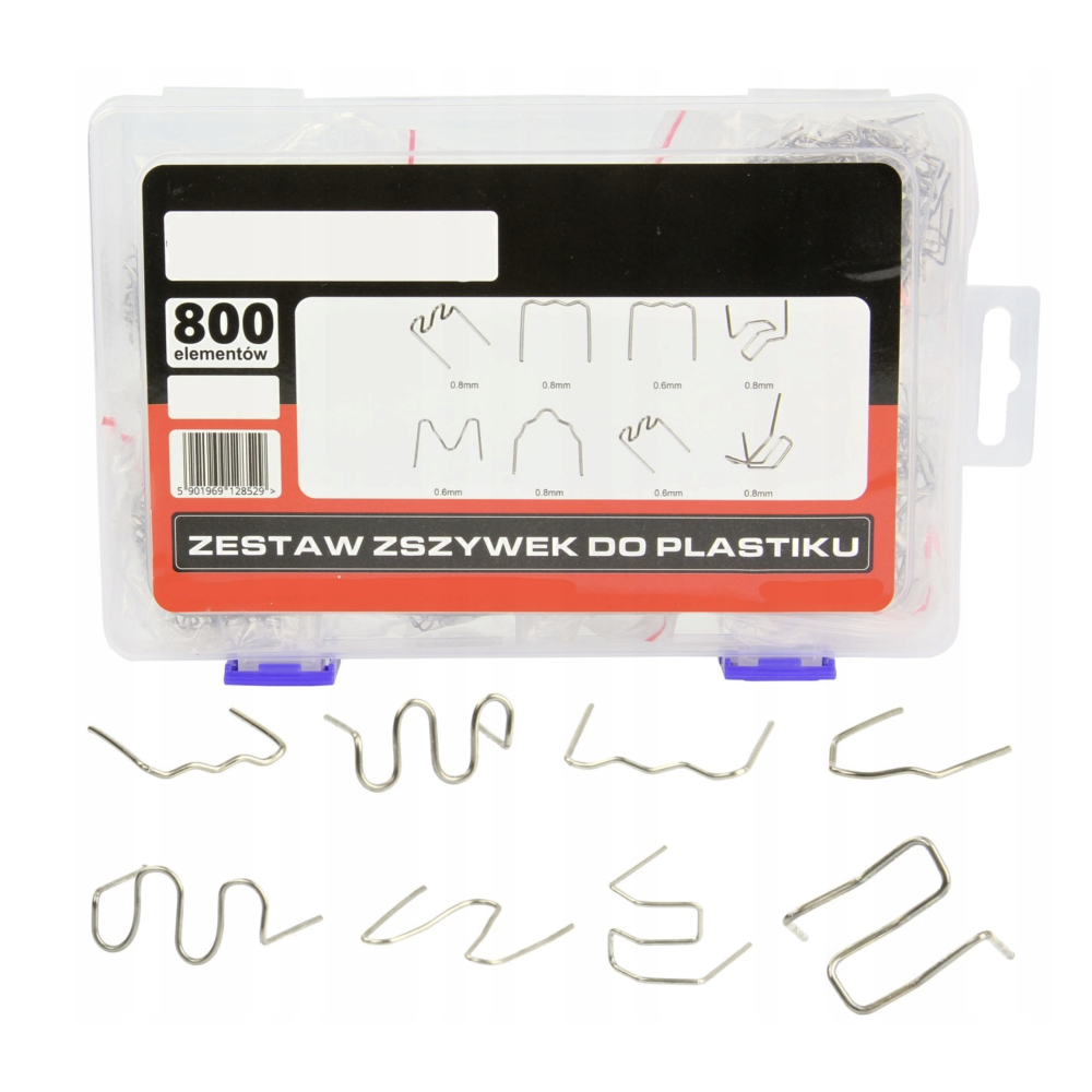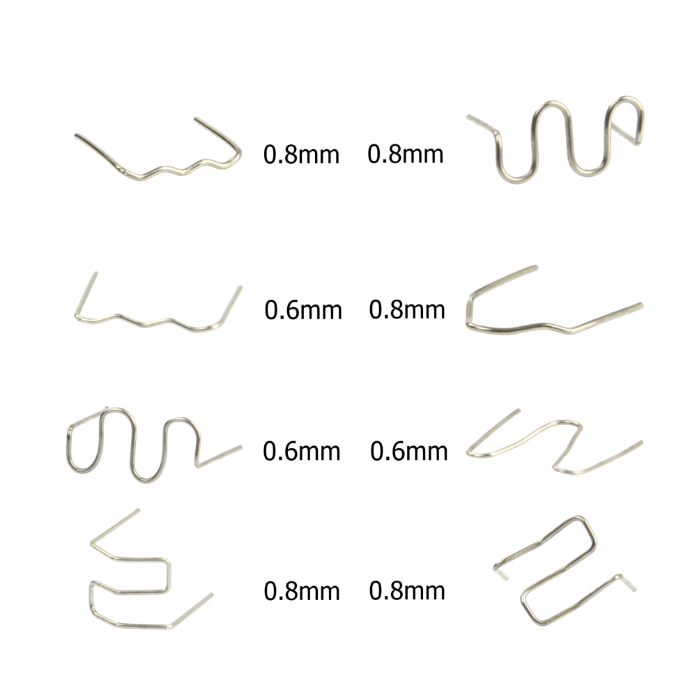 Et komplet sæt med 800 clips til plast svejse- og reparationsarbejde, fremstillet i høj kvalitet, der sikrer styrke, holdbarhed og modstandsdygtighed mod korrosion og aldring. De forskellige størrelser og former gør det nemt at forstærke og forbinde revnede områder i plastdele, så du kan opnå en solid og langtidsholdbar reparation. Sættet indeholder otte typer klips – flade, bølgede og hjørneklips – der dækker de fleste behov, uanset om du arbejder med ABS, PVC, nylon eller andre plastmaterialer. Perfekt til både professionelle og gør-det-selv reparationer, hvor du ønsker et resultat, der både ser pænt ud og holder.