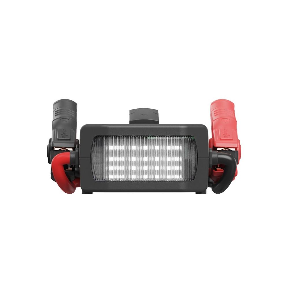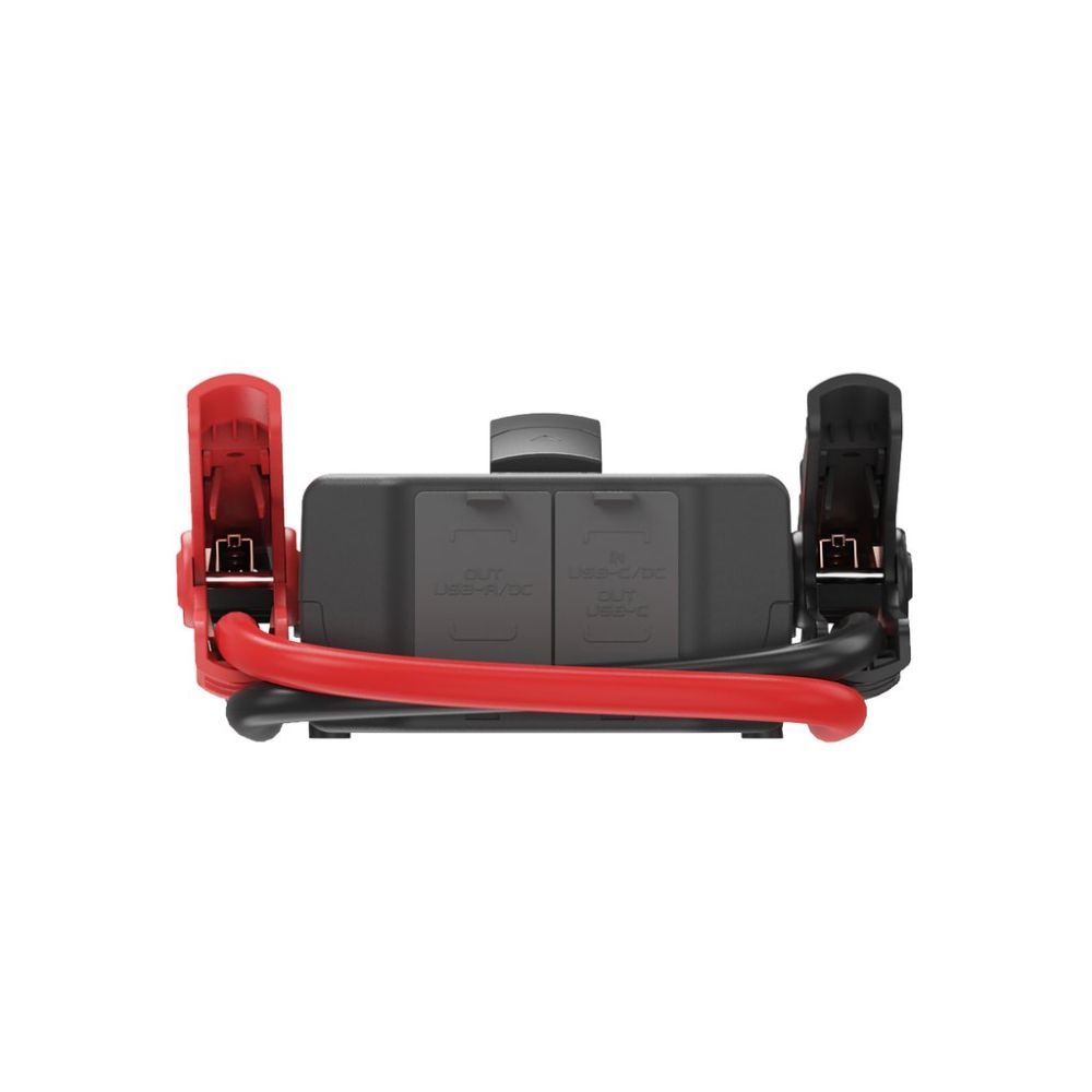 Den integrerede powerbank leverer op til 100W via USB-C og gør det nemt at oplade smartphones, tablets, laptops og andet professionelt udstyr direkte fra enheden. Den indbyggede LED-lommelygte yder 400 lumen og har tre funktioner: kraftigt hvidt lys, rødt stroboskoplys og rødt SOS-lys – perfekt i nødsituationer eller ved arbejde i mørke omgivelser. Jumpstarteren er konstrueret i et robust og slagfast kabinet og er IP65-certificeret, hvilket betyder, at den er både støv- og vandafvisende. Det giver pålidelig beskyttelse mod regn, snavs og hårde arbejdsmiljøer.