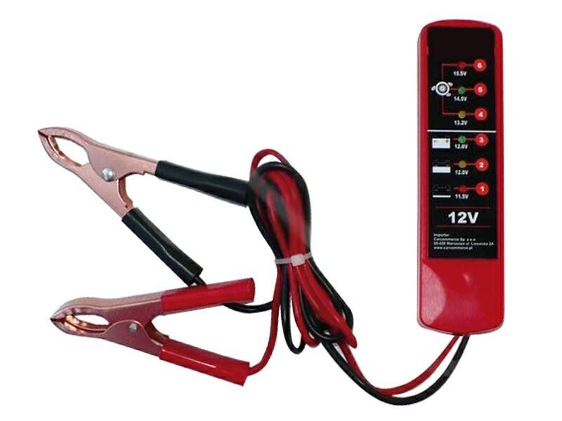 Batteri- og alternatortester 12V - Universal - Inkl. 2 batteriklemmer og kabel (med LED indikator)