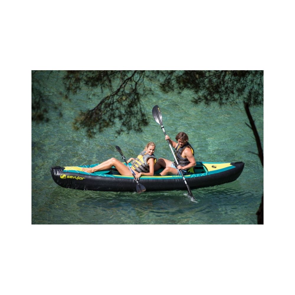 Sevylor Ottawa V2 er en rummelig og stabil oppustelig kajak designet til familieeventyr på søer, fjorde og rolige floder. Med et fleksibelt 2+1 sædesystem kan kajakken bruges af to voksne og et barn, men sæderne kan også fjernes, så den hurtigt omdannes til en komfortabel 2-personers kajak. Den brede konstruktion giver høj stabilitet på vandet, hvilket gør modellen ideel til både begyndere og fritidspaddlere. Samtidig sørger den robuste bund og slidstærke materialer for god holdbarhed og lang levetid – selv ved hyppig brug.