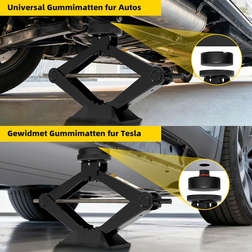 Donkraften er fremstillet af højstyrke koldvalset stål med en forstørret base, der giver maksimal stabilitet under brug. De medfølgende skridsikre gummipuder beskytter bilens løftepunkter mod ridser og skader. Den solide stålkonstruktion er korrosionsbestandig og modstandsdygtig over for rust, så du får et holdbart produkt, der kan bruges igen og igen - og som sparer dig både arbejde og penge i det lange løb.