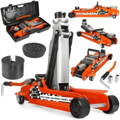 Kvalitets hydraulisk 2,5 ton værkstedsdonkraft. Lavprofil donkraft er produceret i kraftig forstærket stål som løfter 2500 kg. Denne donkraft er især nyttig til lave biler pga. den lave højde i forenden på donkraften. Donkraften er også udstyret med en skraldemekanisme, der tillader præcis højdejustering af flere niveauer. Alle komponenter er malet og galvaniseret. Praktisk at bruge, udstyret med 4 hjul, der giver dig mulighed for hurtigt at placere donkraften det rigtige sted. Maks. løftehøjde 385 mm. og Min. løftehøjde 85 mm. Uundværlig til gør det selv manden eller på autoværkstedet.
