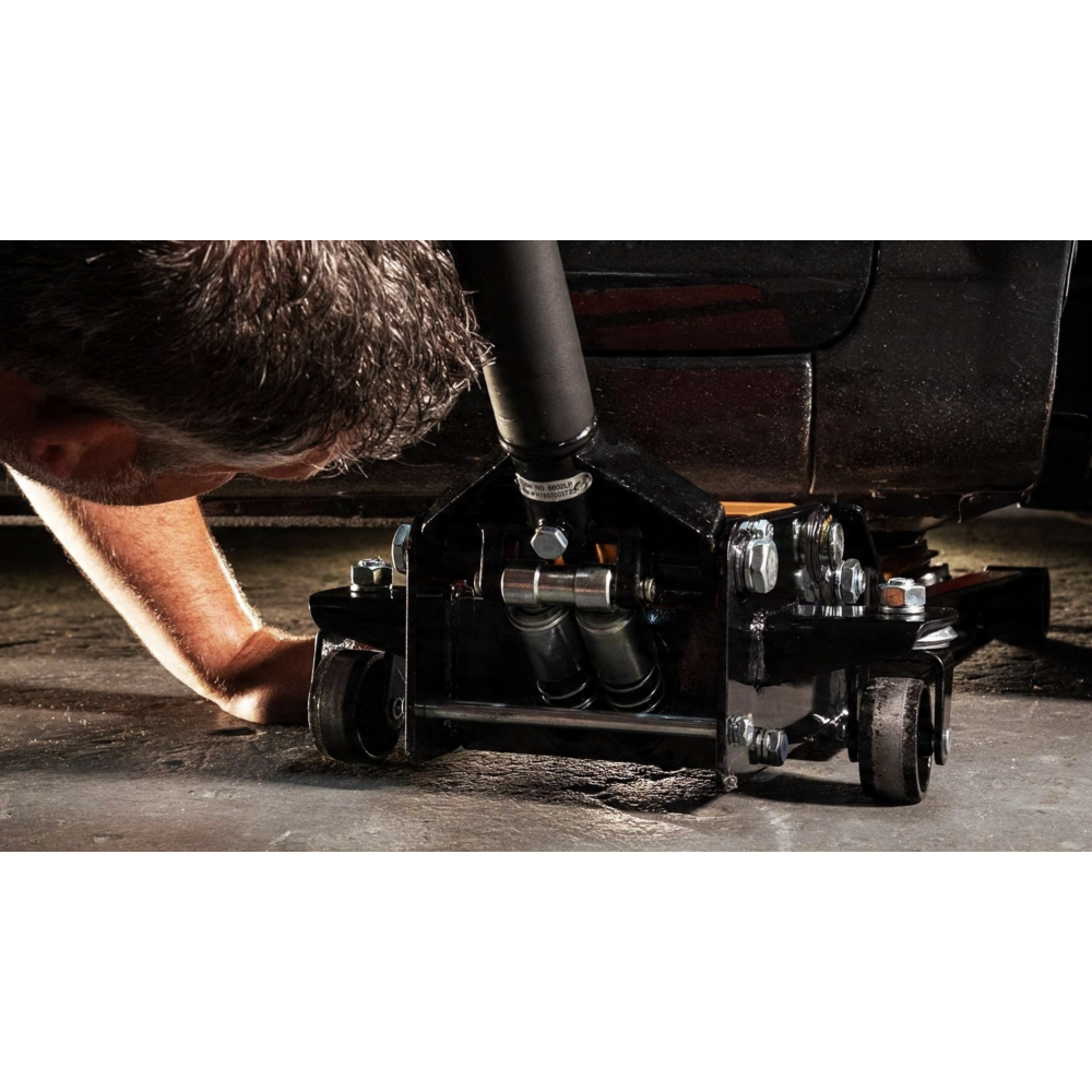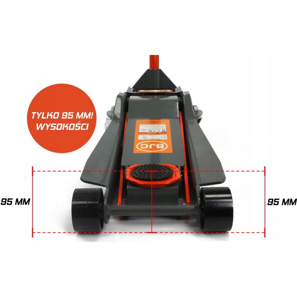 Donkraften har et arbejdsområde fra 95 mm til 550 mm, hvilket gør den ideel til lavprofilerede biler med sportsundervogn. Den er desuden udstyret med en afløbsventil integreret med en sikkerhedsventil for ekstra tryghed under brug samt et ribbet håndtag som maksimerer grebet. En gummibelægning beskytter bilens karosseri mod utilsigtet skade.