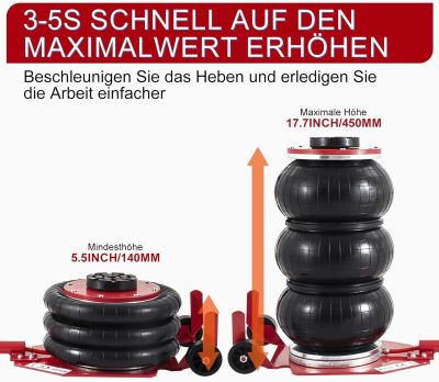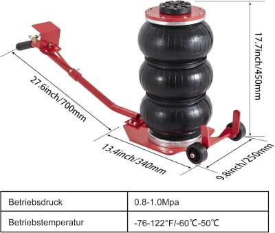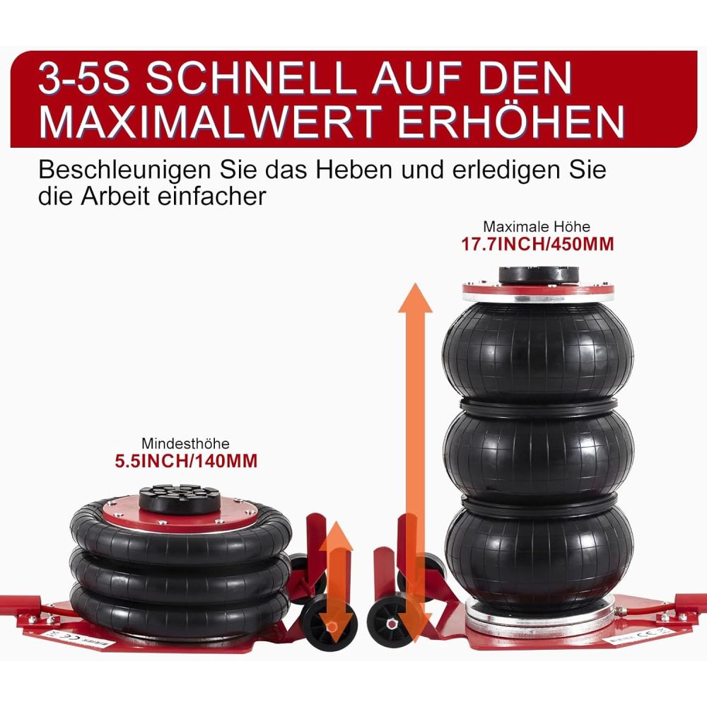 Løftetid: ca. 5 sekunder (afhængig af lufttryk)